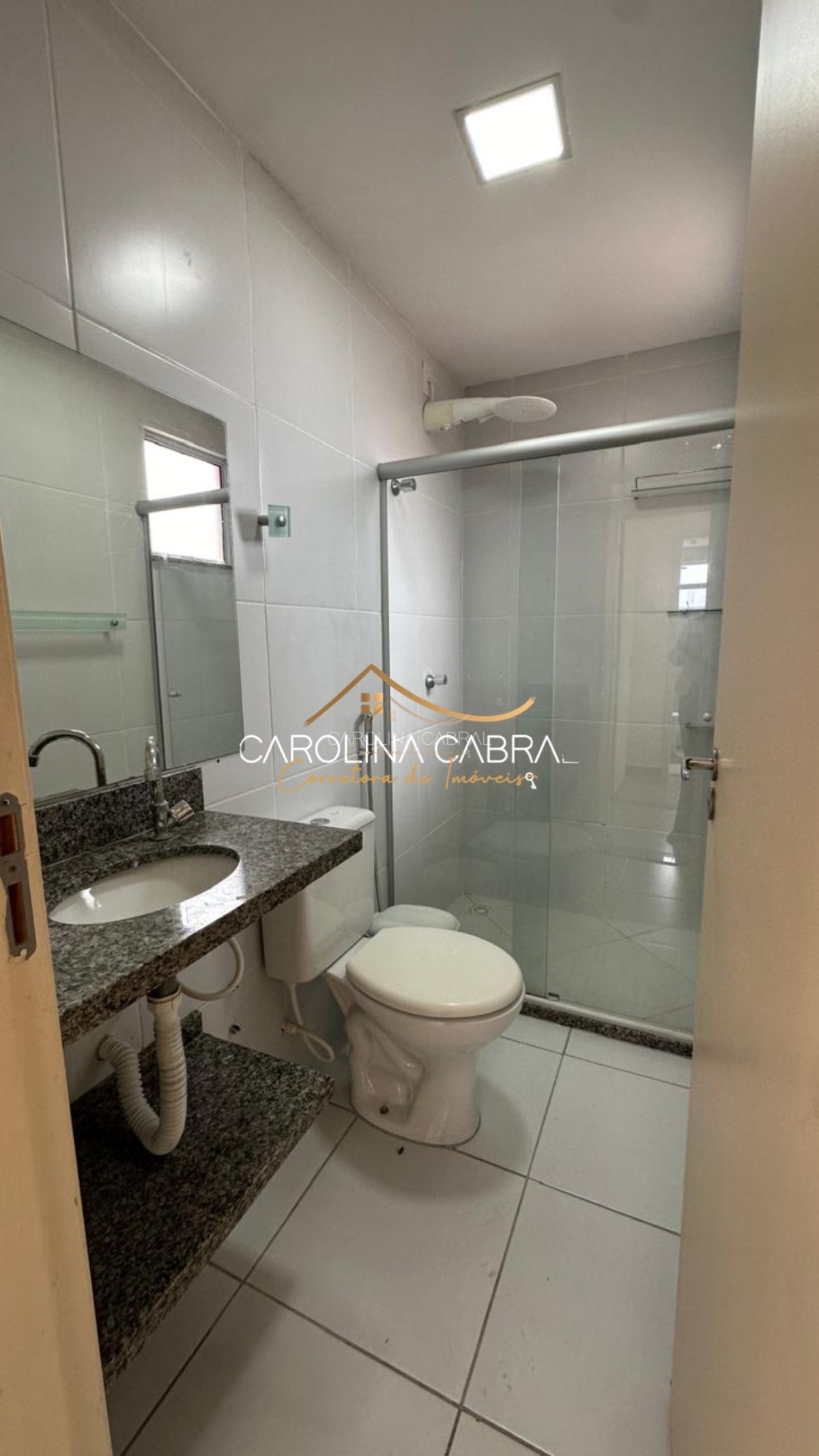 Banheiros com pia de granito e box de vidro