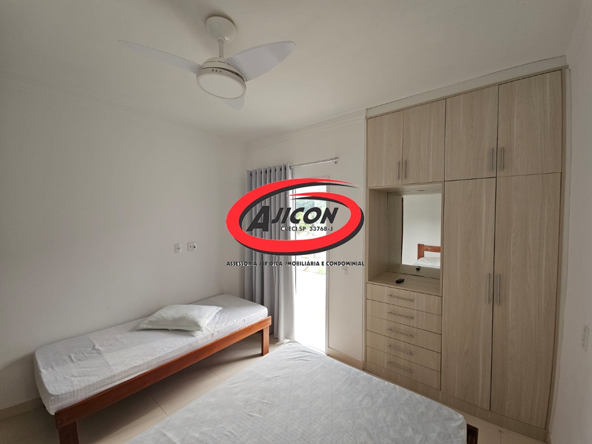 Possui 02 dormitórios, sendo 01 suíte, 02 vagas de garagem, sendo 01 coberta e 01 semicoberta, armários embutidos nos quartos e cozinha, ventilador, ar-condicionado, churrasqueira, área de serviço e armário náutico.