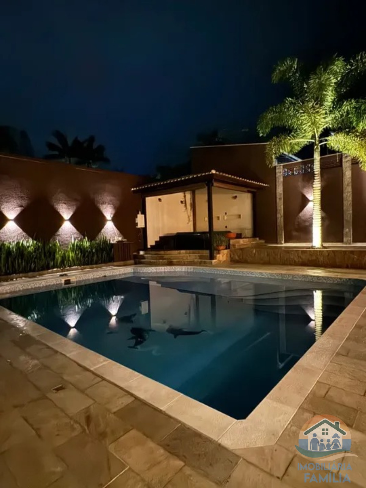 Imóvel conta com 6 dormitórios amplos, suíte master com hidromassagem, closet, ducha dupla e varanda. Sala de estar e jantar integradas, cozinha completa com revestimentos em porcelanato, adega privativa para 400 garrafas, Spa para oito pessoas, área de serviços, 4 wc, 6 vagas de garagem, área gourmet ampla e completa( recebe mais de 50 pessoas, além de piscina grande com deck molhado.