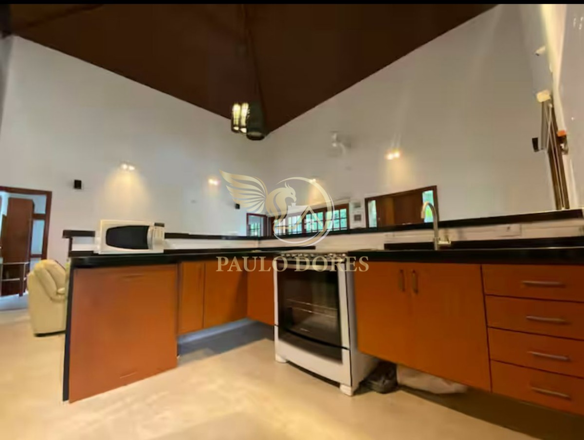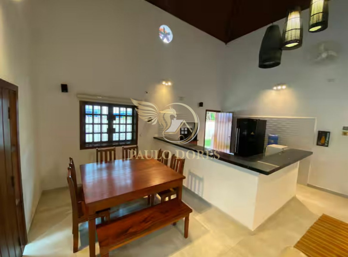 Composta por cinco dormitórios, sendo três suítes, e quatro banheiros, a casa foi projetada para garantir conforto e privacidade para toda a família. A residência é ampla, totalmente mobiliada e possui uma topografia plana, agregando praticidade e valorização ao imóvel.