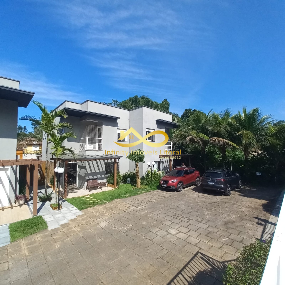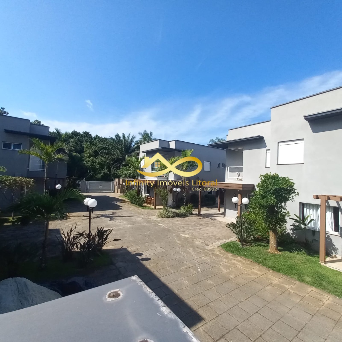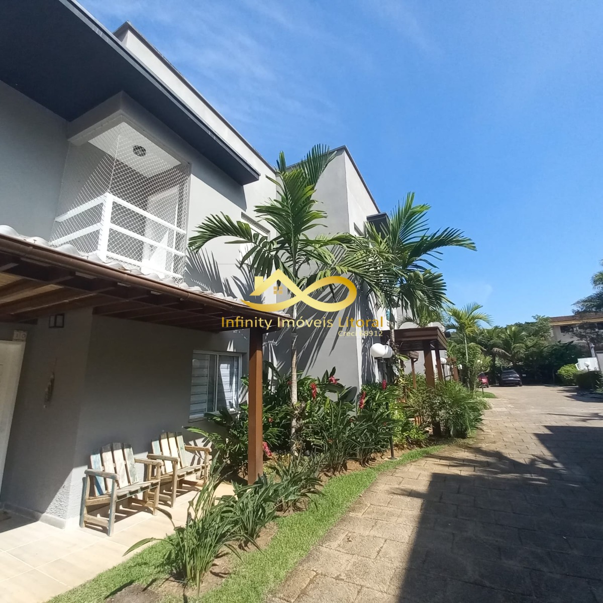 Condomínio tem piscina e 2 vagas de estacionamento para cada casa.