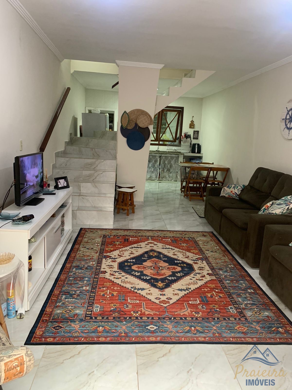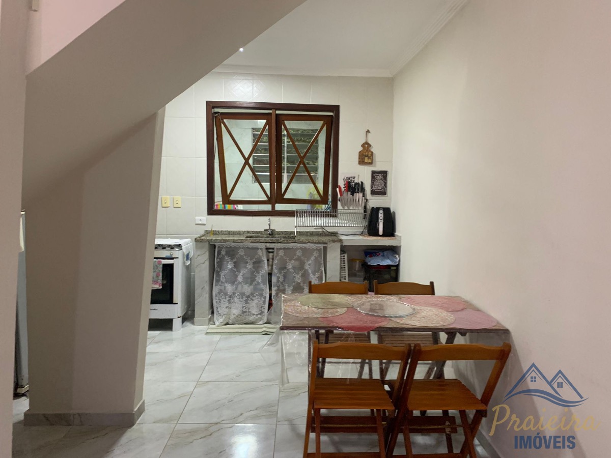 Possui sala e cozinha integradas, lavabo, área de serviço e duas suítes amplas no piso superior. Na parte externa, conta com terraço e churrasqueira privativa, além de uma vaga de garagem.