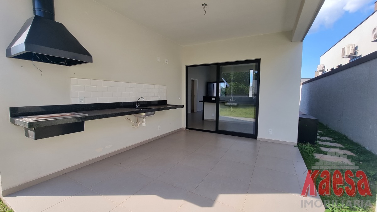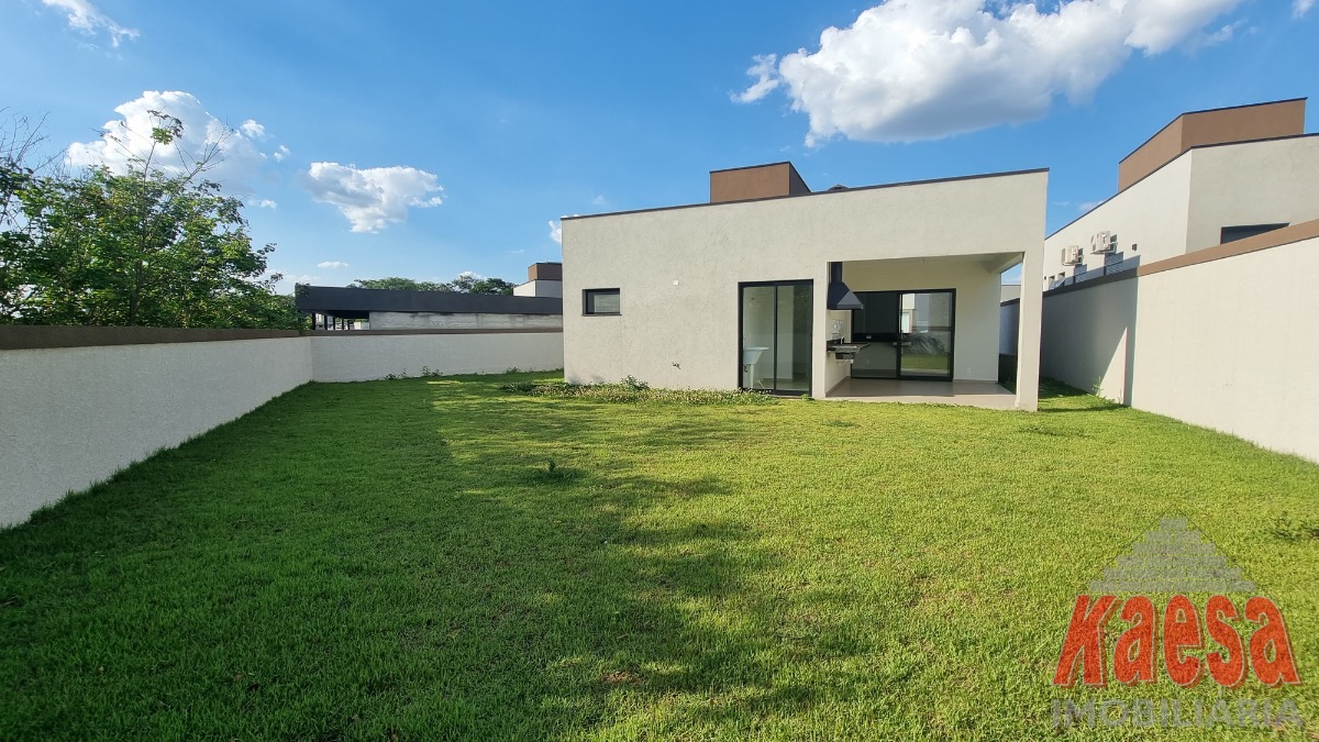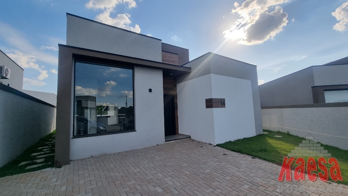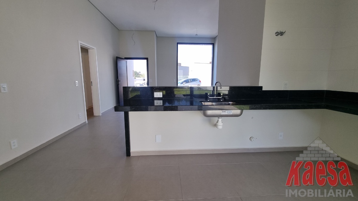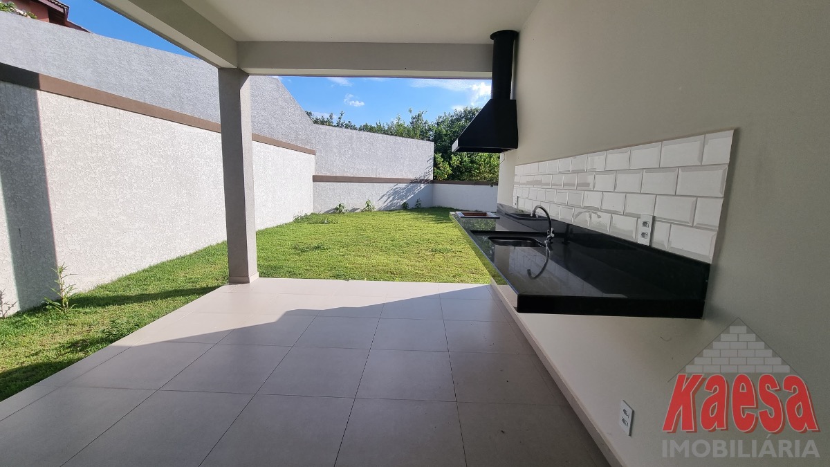 Casa dentro de condomínio, térrea, nova, com 3 suítes, sala 2 ambientes, cozinha americana, 2 vagas garagem, quintal, lavanderia.