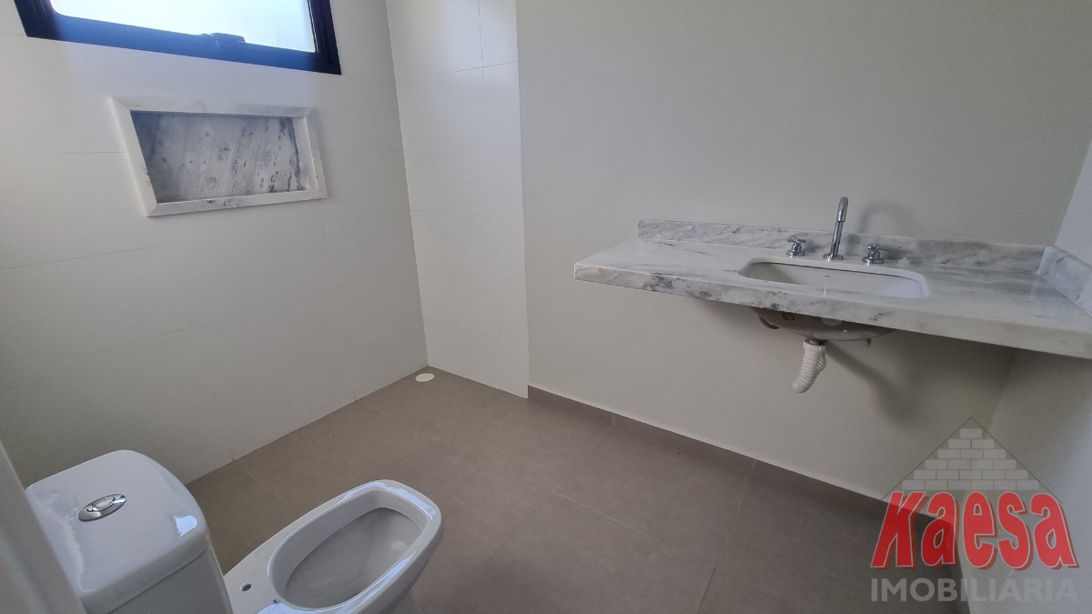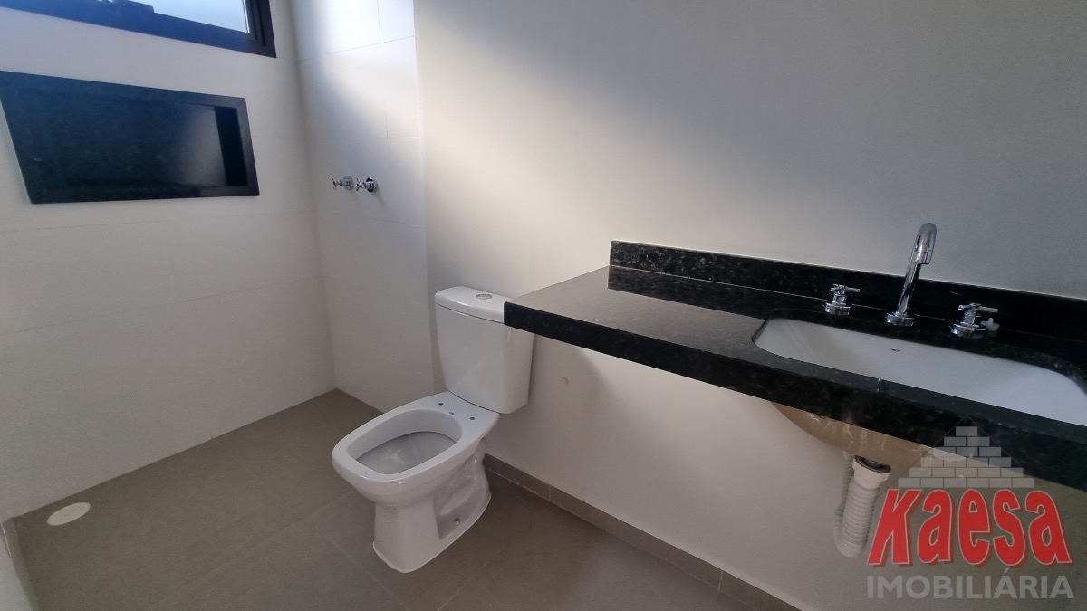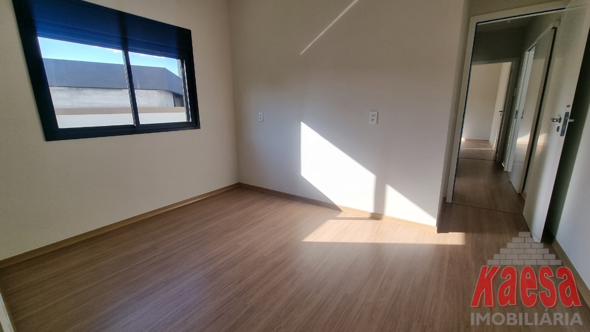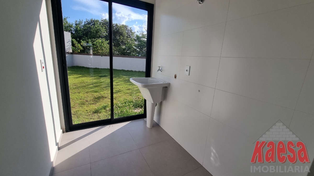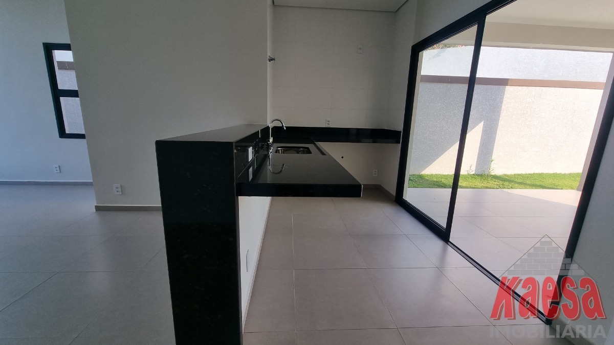 Casa dentro de condomínio, térrea, nova, com 3 suítes, sala 2 ambientes, cozinha americana, 2 vagas garagem, quintal, lavanderia.
