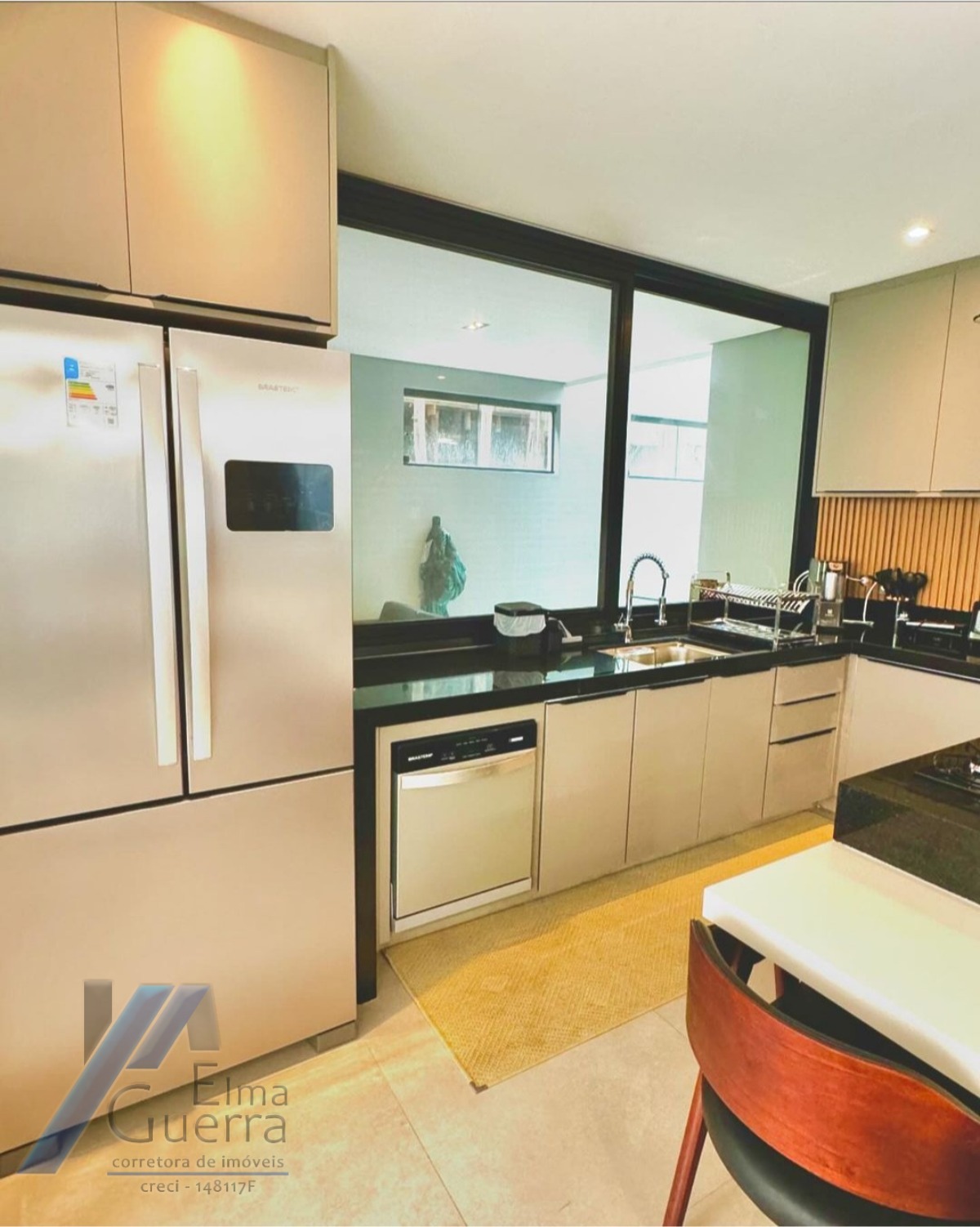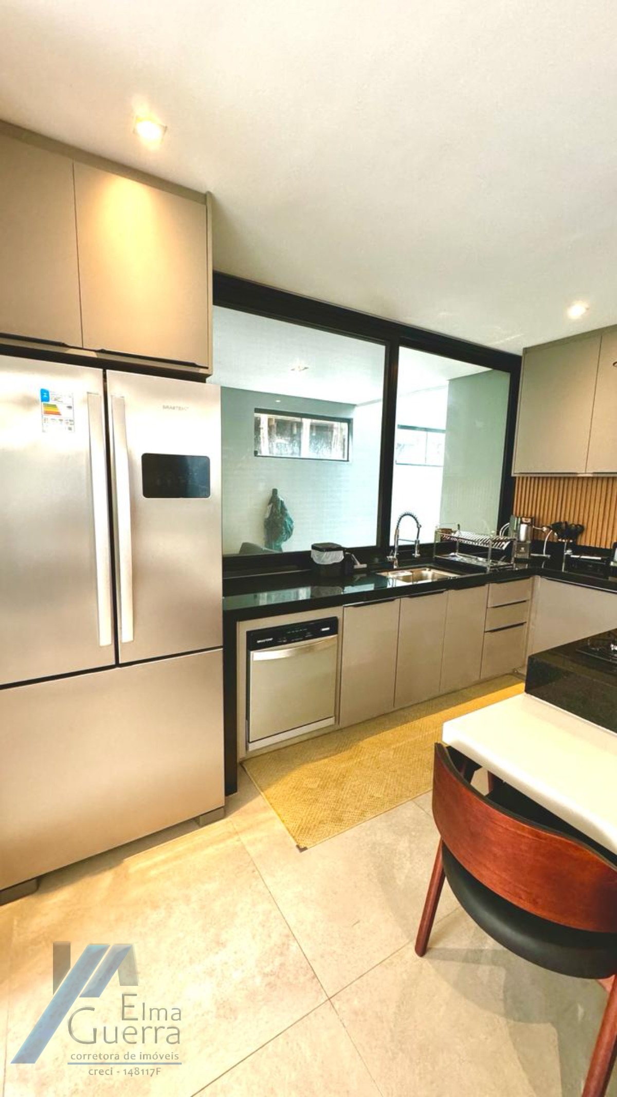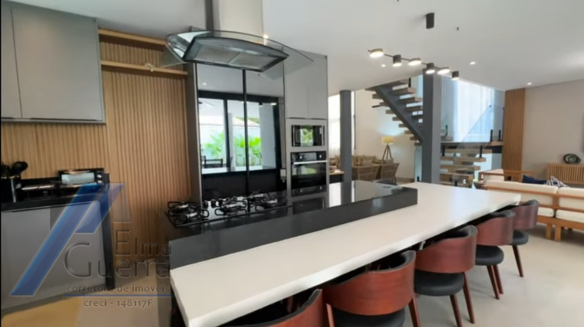 Cozinha planejada, em ilha, toda equipada com armários modulados e eletrodomésticos de primeira linha