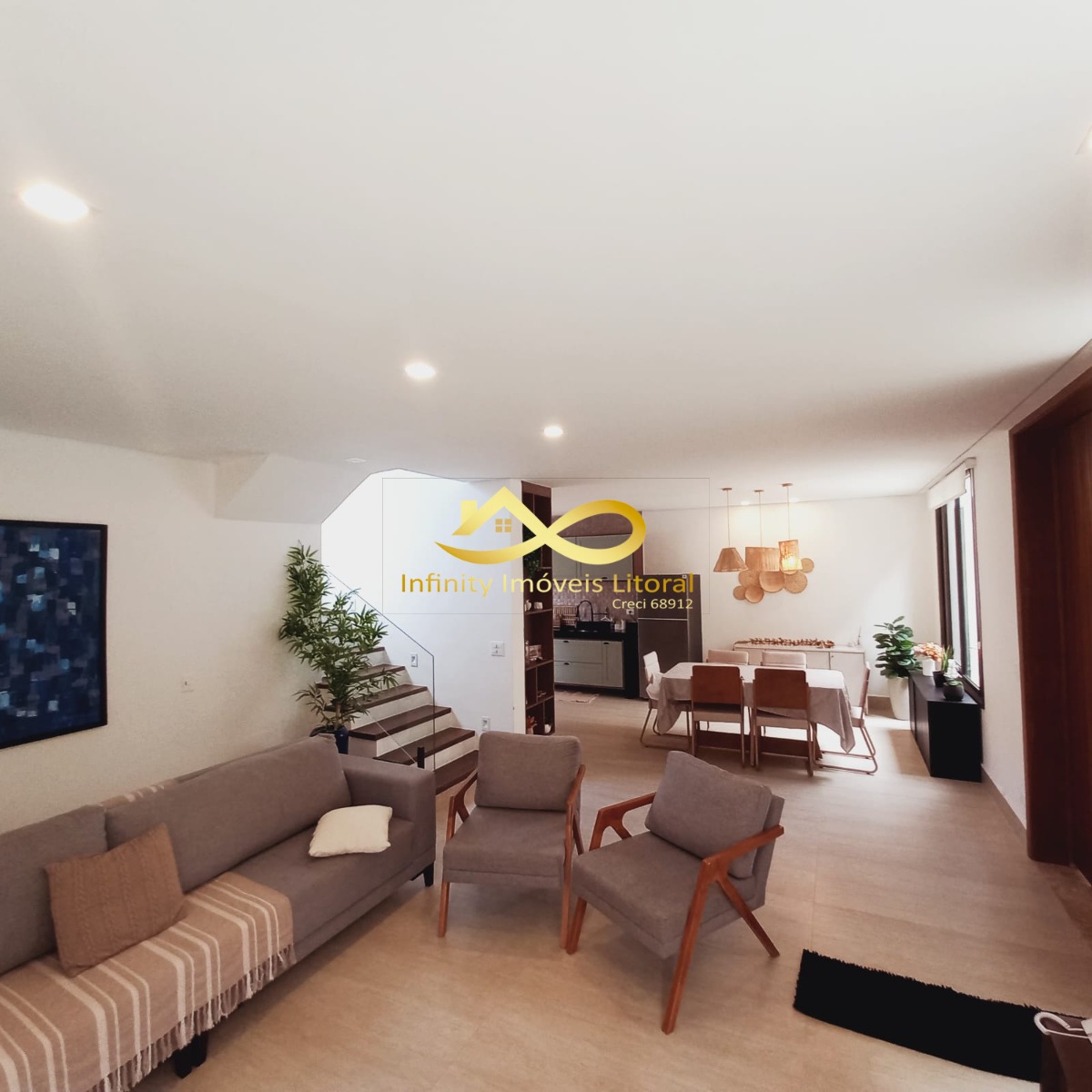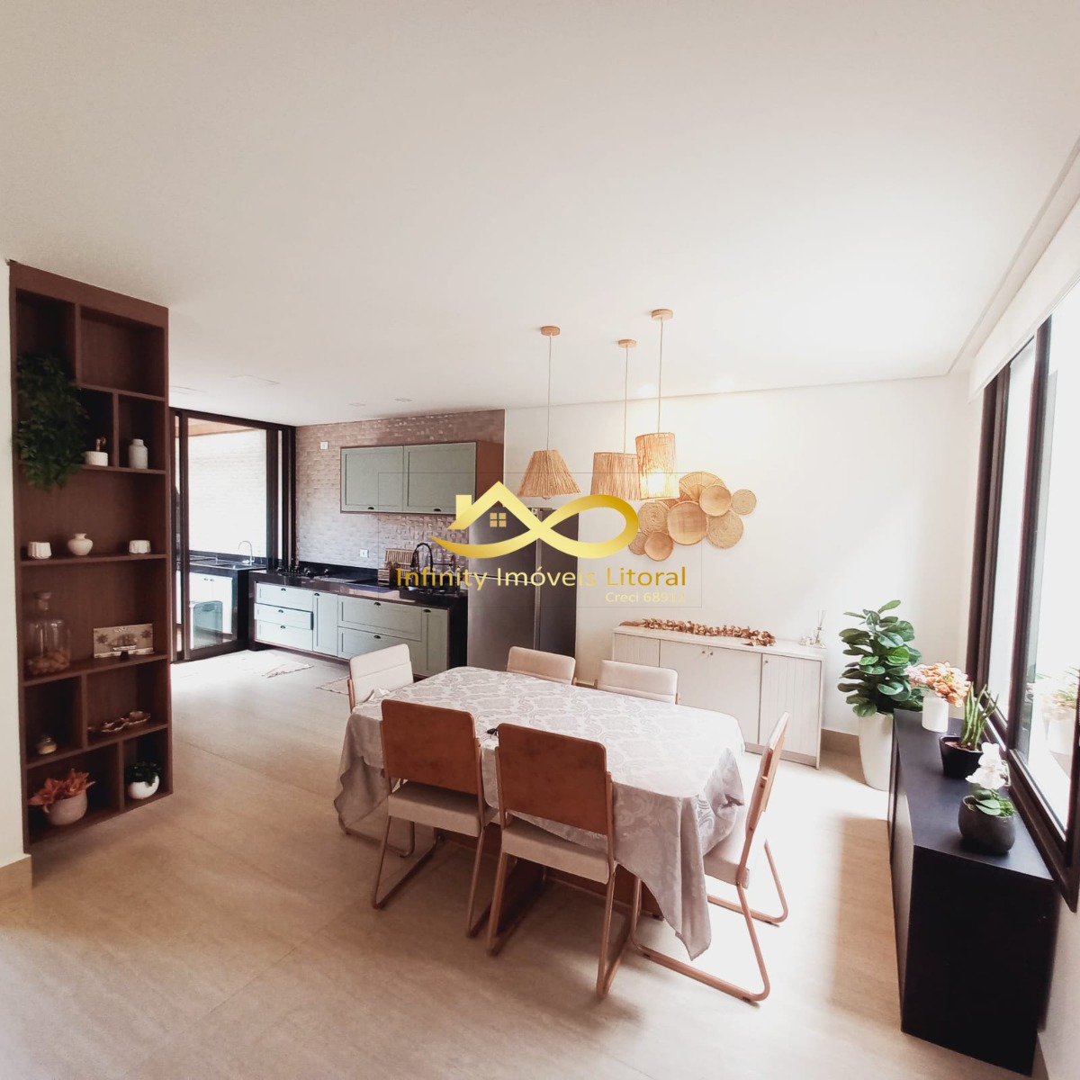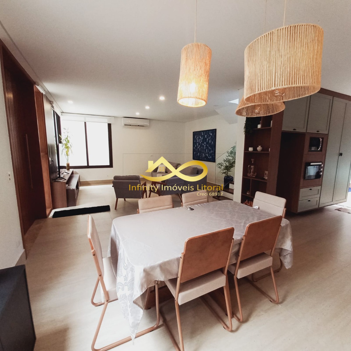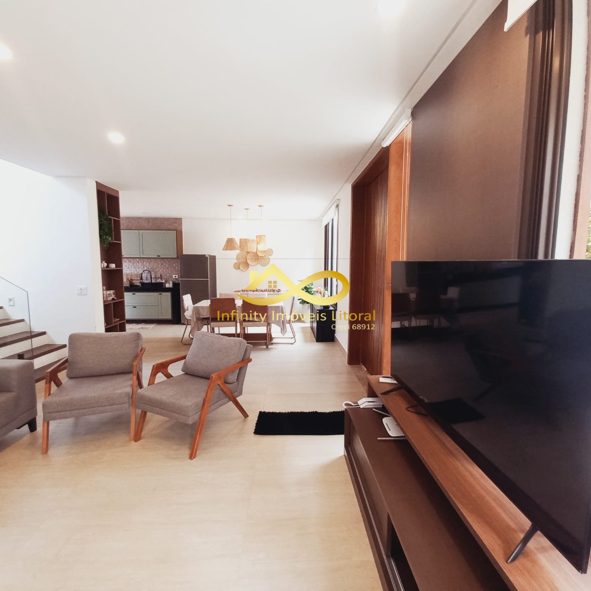A casa tem sala de estar, jantar e cozinha em ambiente aberto, cozinha equipada com utensílios domésticos de ultima geração todos em aço inoxidável.