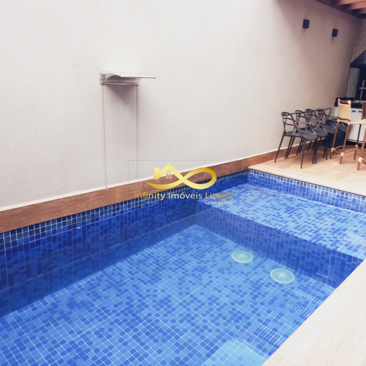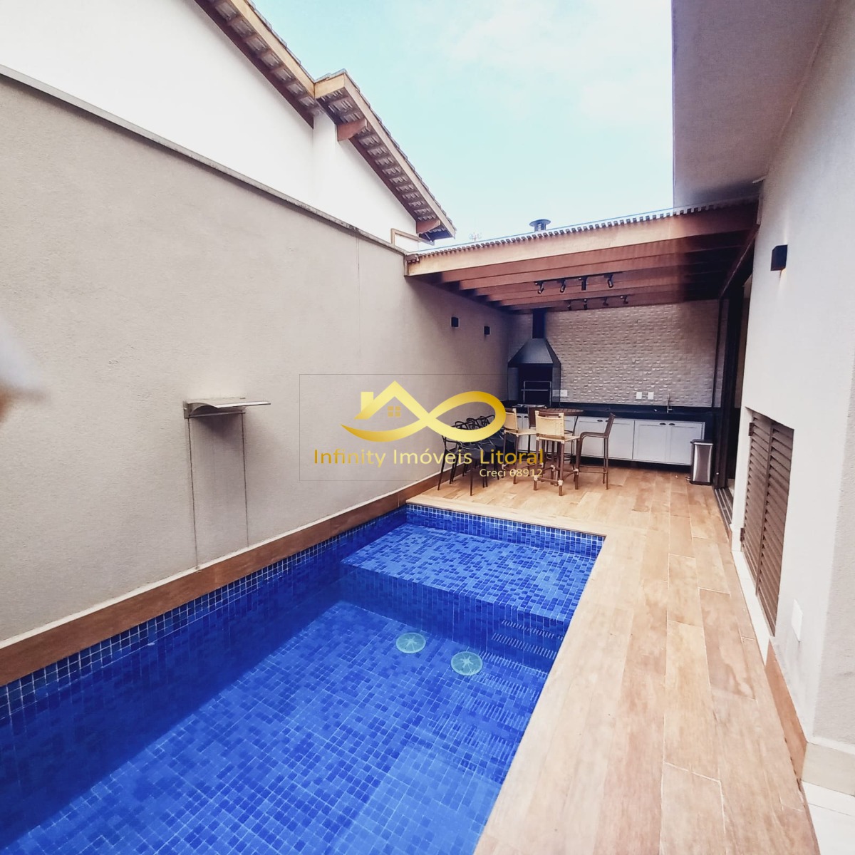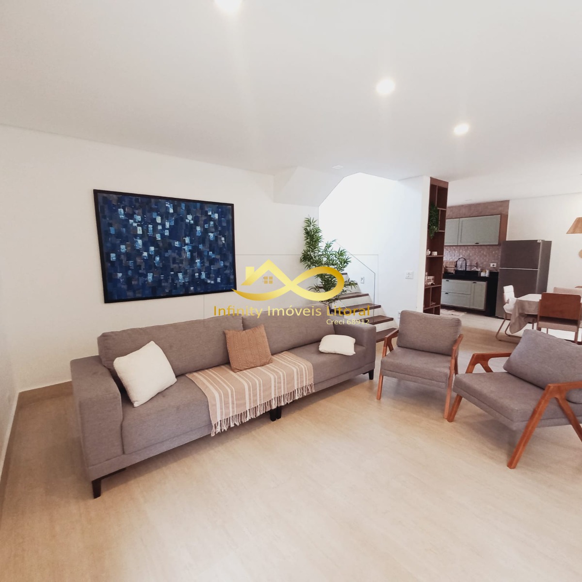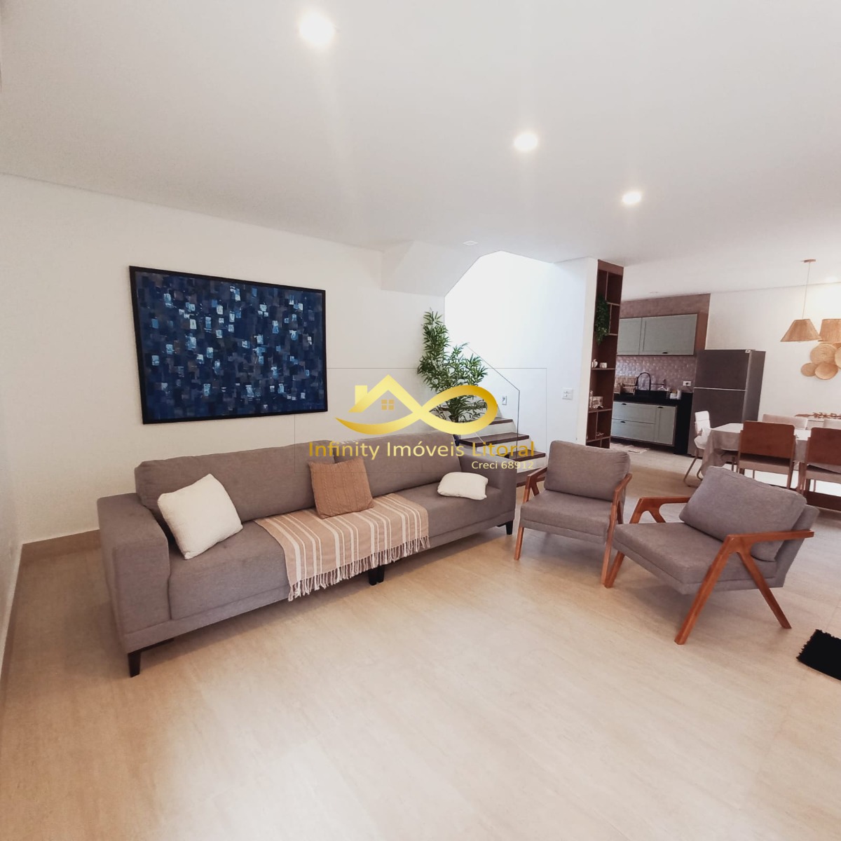 A casa tem sala de estar, jantar e cozinha em ambiente aberto, cozinha equipada com utensílios domésticos de ultima geração todos em aço inoxidável.