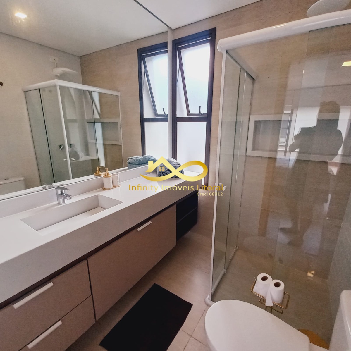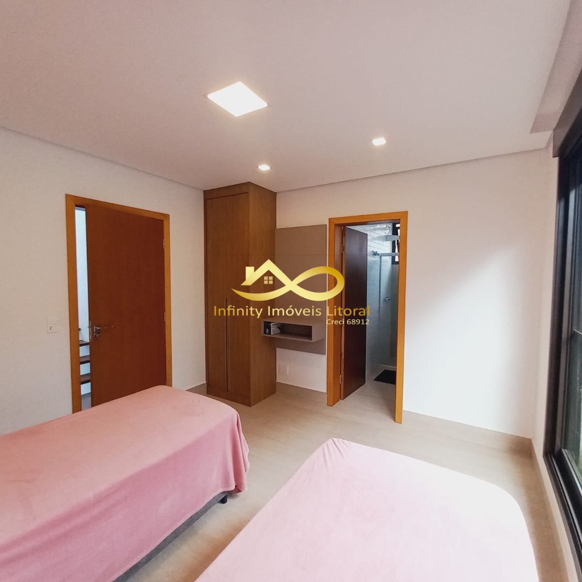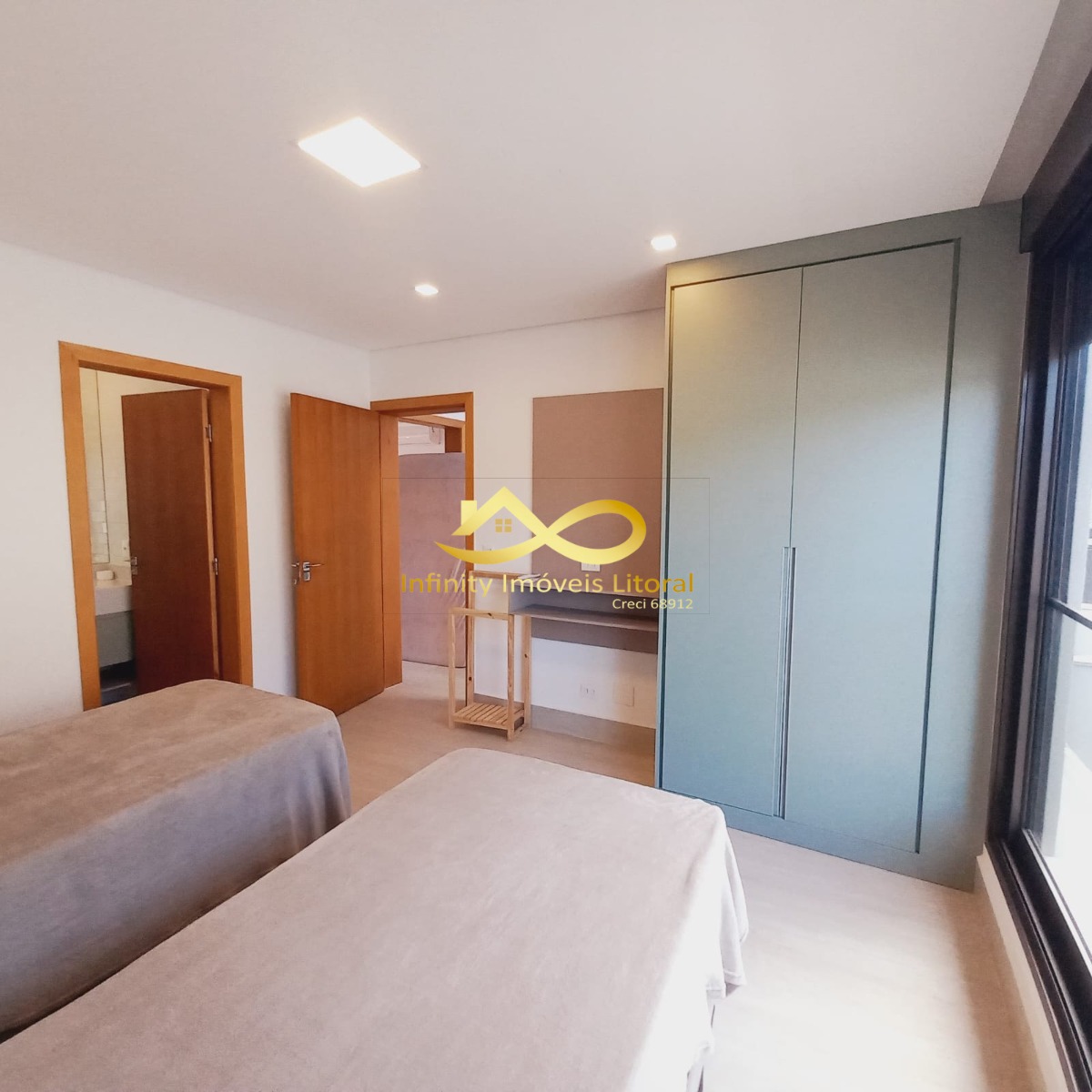 As 4 suítes tem janelas automáticas com armários planejados e ar condicionado.