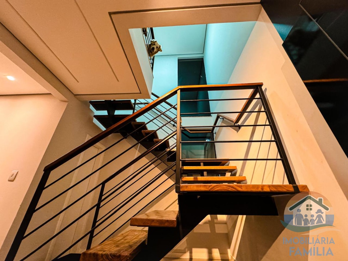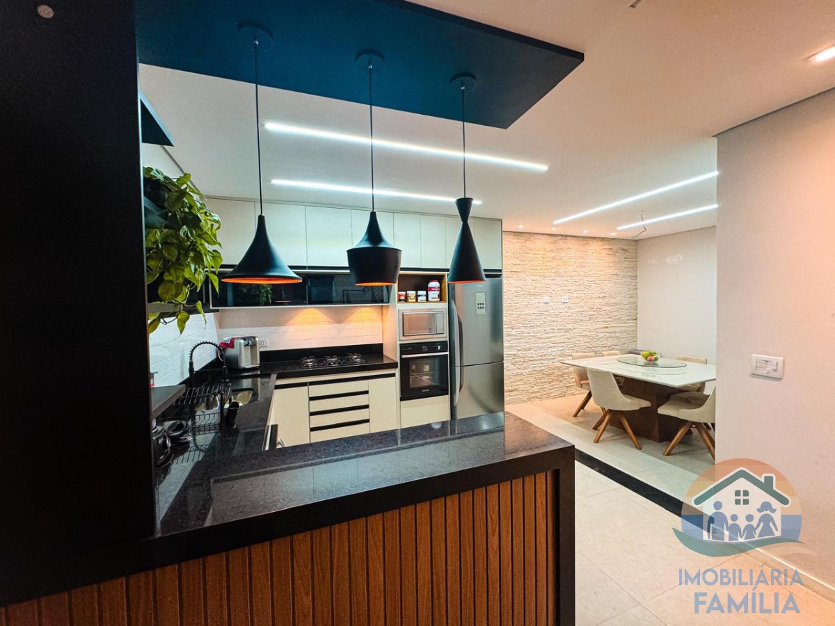 São três dormitórios amplos (1 suíte), varanda, sala de estar e jantar, cozinha equipada, wc, área de serviços, quintal independente com área gourmet e churrasqueira e uma vaga de garagem coberta.