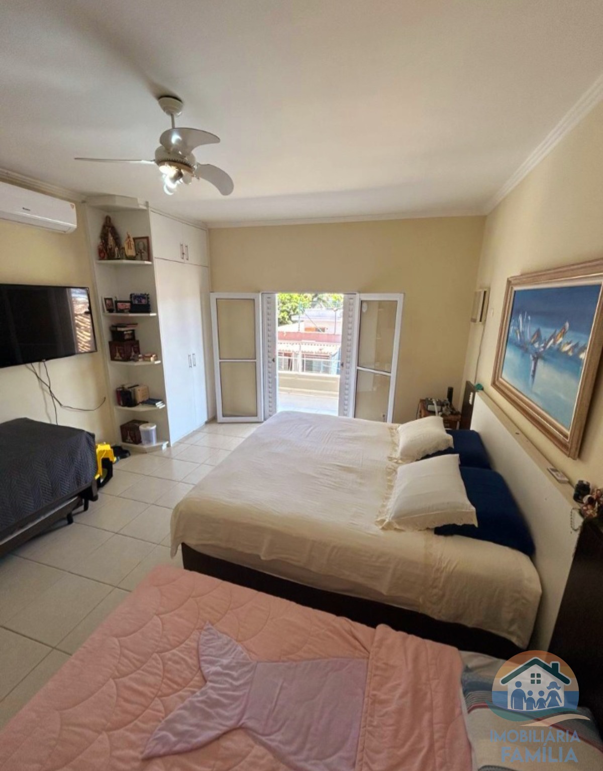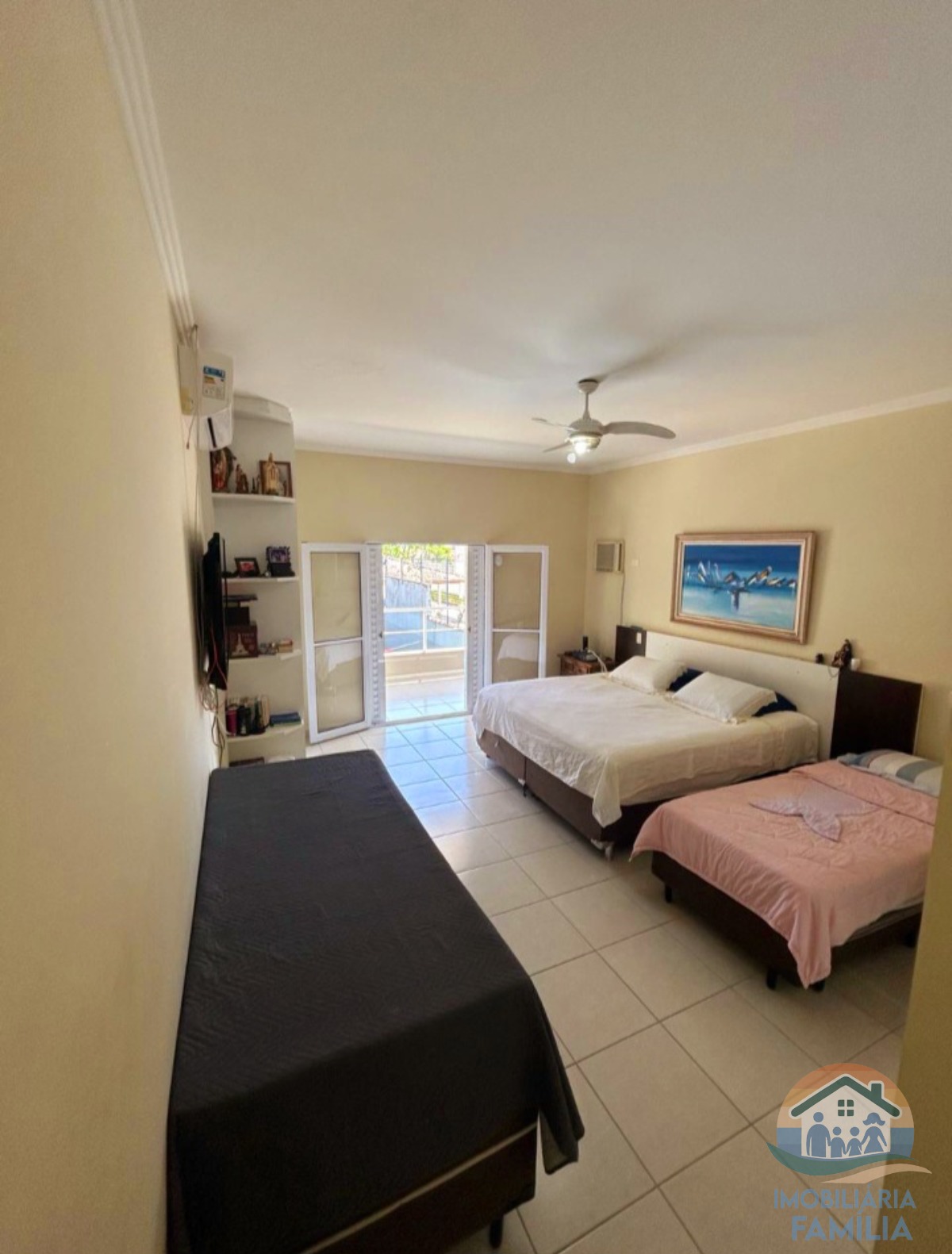 Todos os Dormitórios do imóvel tem ventiladores de teto e na casa principal Ar-condicionado.