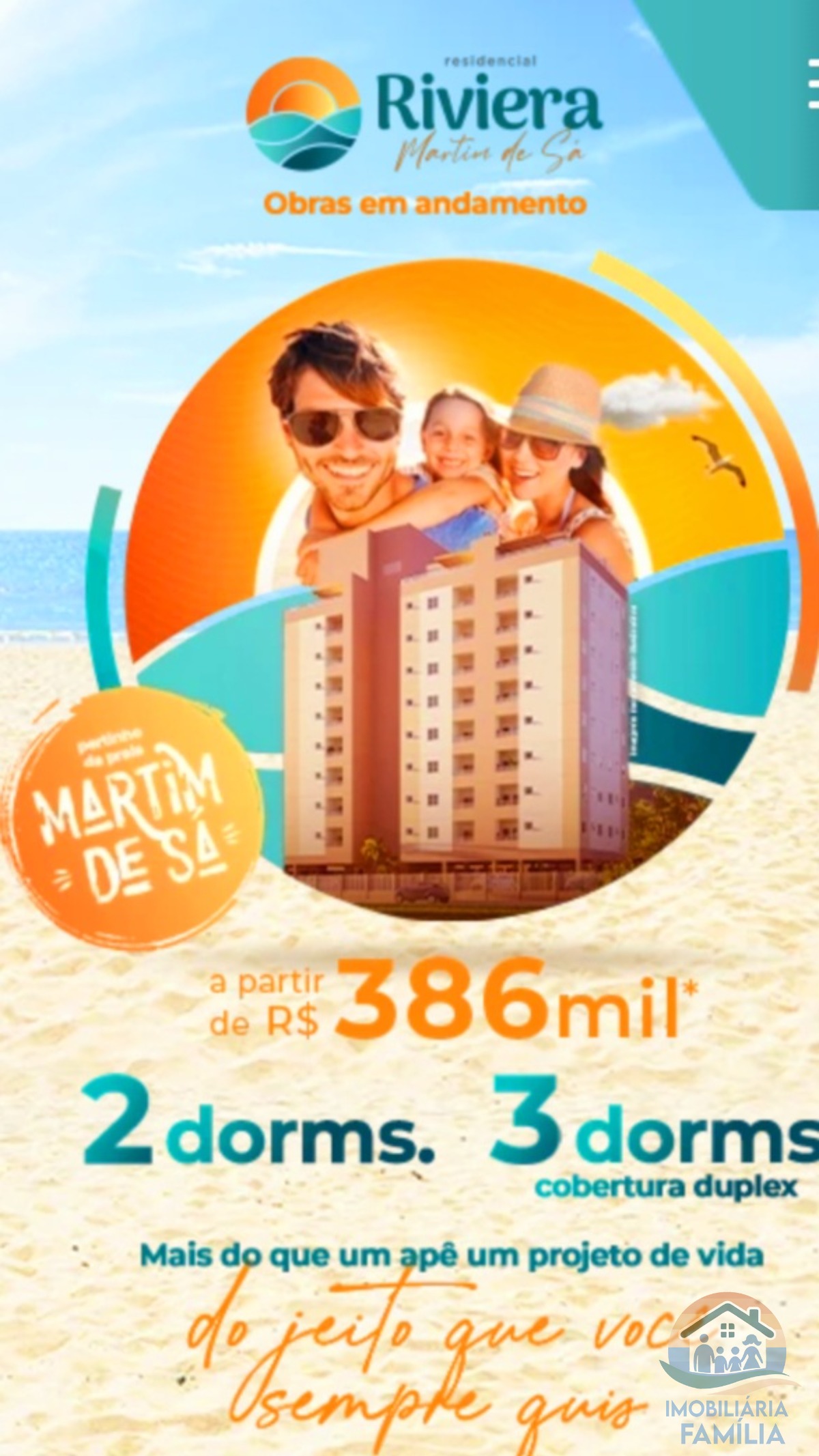 Conheça o Residencial Riviera Martim de Sá, um empreendimento pertinho da praia em Caraguatatuba com opções de 2 e 3 dormitórios, coberturas duplex e lazer exclusivo. Cada detalhe é projetado para proporcionar uma experiência única, oferecendo apartamentos com suíte e churrasqueira na varanda, a poucos minutos da Praia Martim de Sá. Seu novo lar é um projeto de vida à beira-mar.