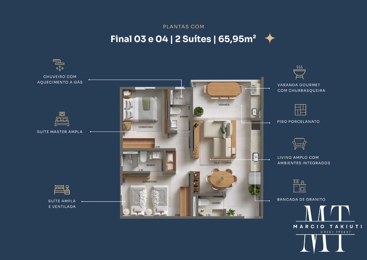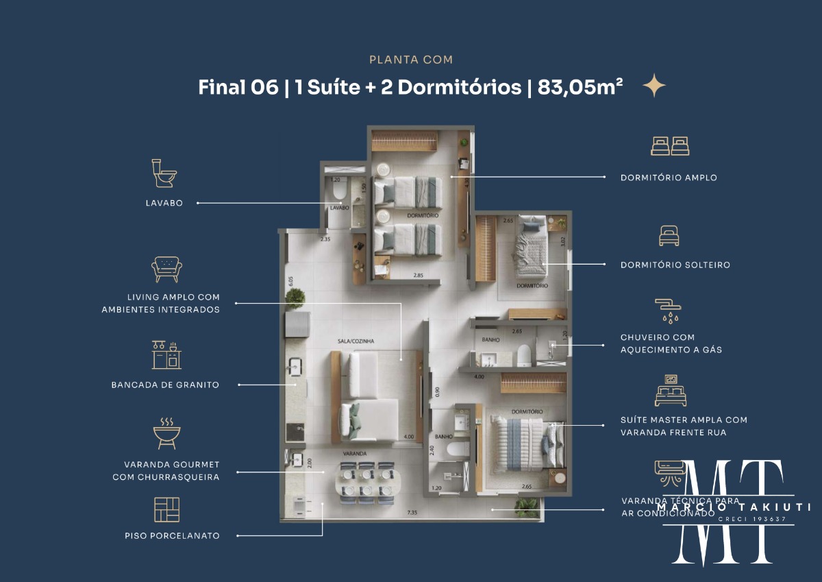 02 DORMITÓRIOS SENDO 01 SUÍTE