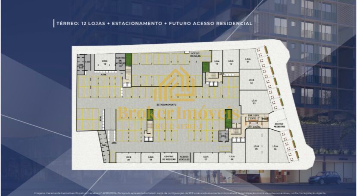 Além disso contará com uma fachada ativa com 12 lojas que irão oferecer mais comodidades e valorização ao empreendimento.