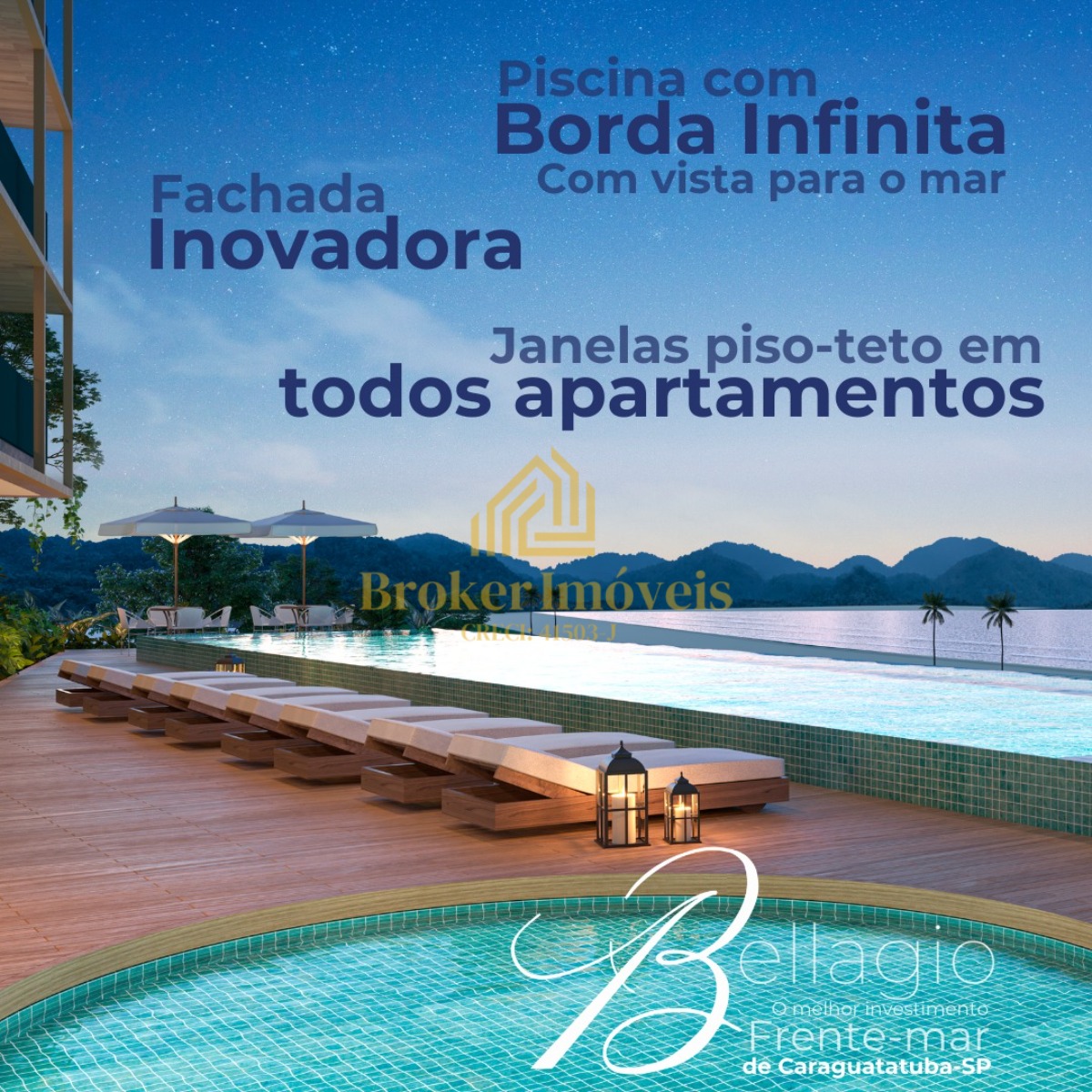 BELLAGIO FRENTE AO MAR - Apartamentos com 01, 02 ou 03 dormitórios no BELLAGIO na praia do Centro e Camaroeiro, Caraguatatuba/SP torres de frente para o mar.