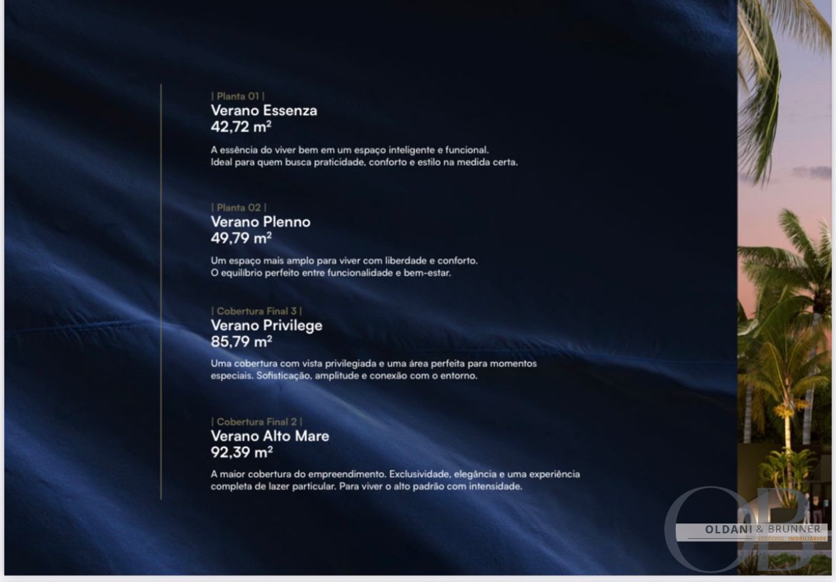 Plantas com áreas entre 42,72m² e 92,39m²