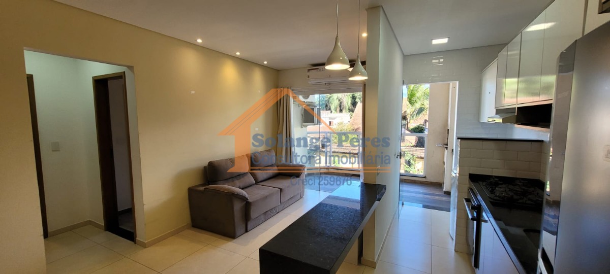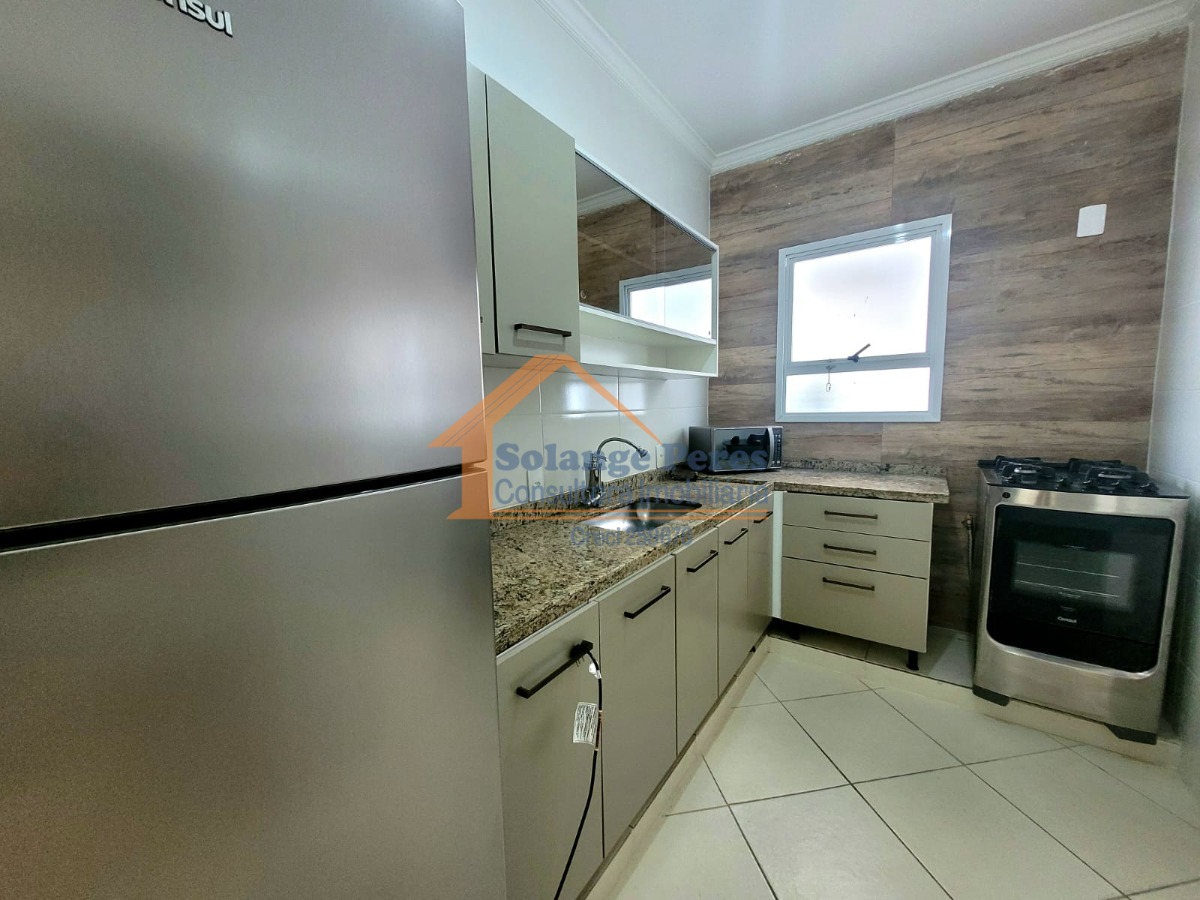 O apartamento é mobiliado e possui ar condicionado, garantindo um ambiente agradável em todas as estações.