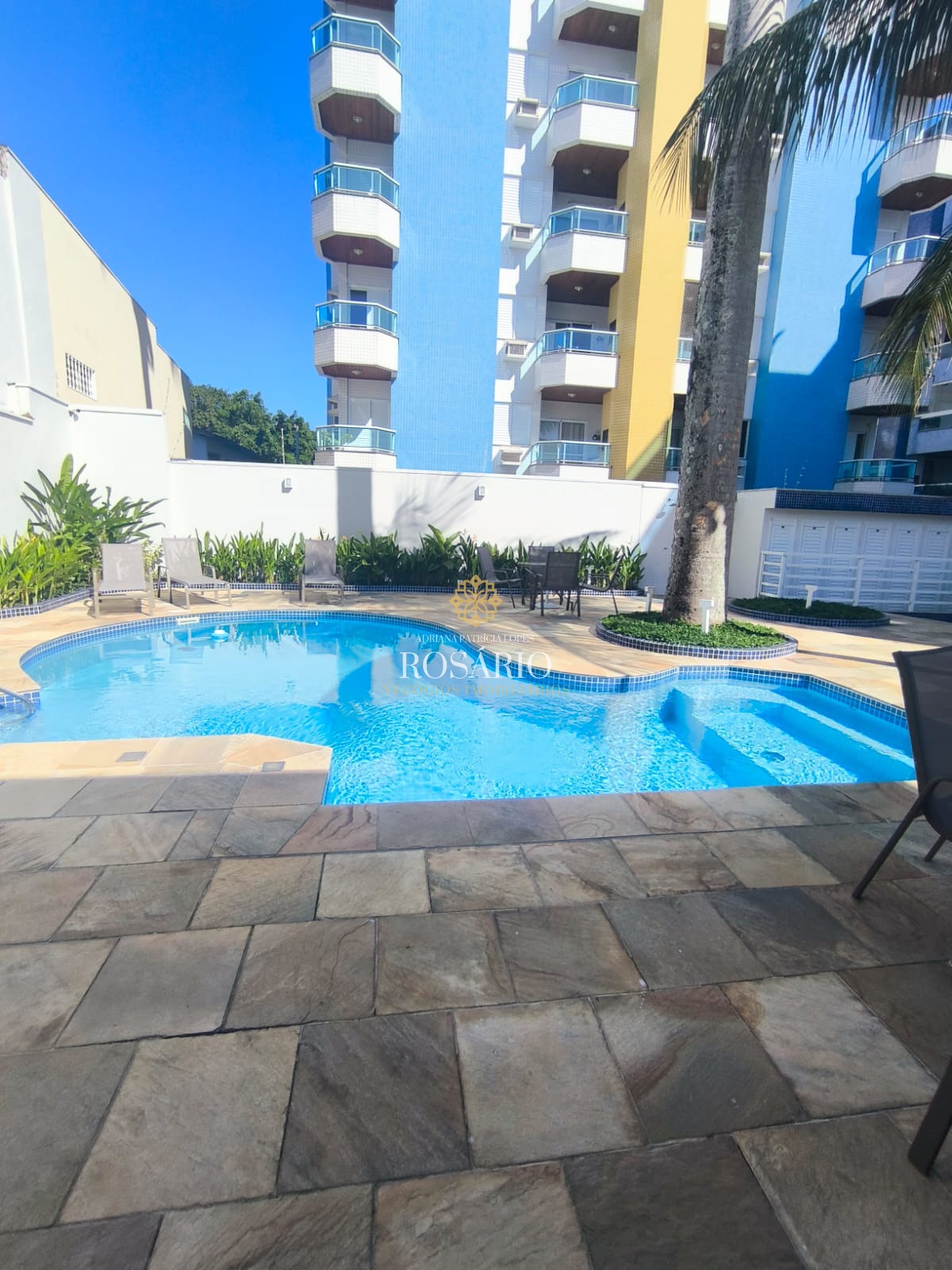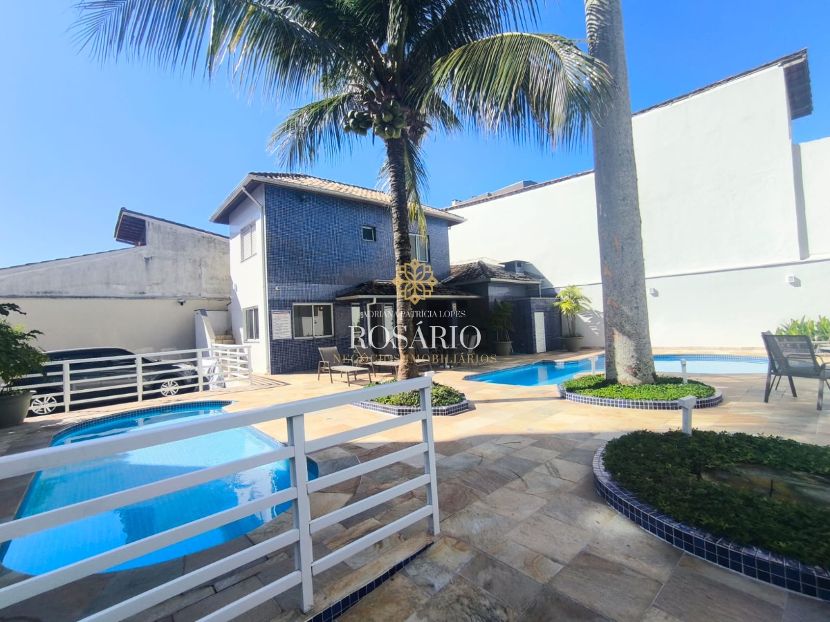 Condomínio com piscina, salão de festas com churrasqueira, ducha, elevador e armário náutico