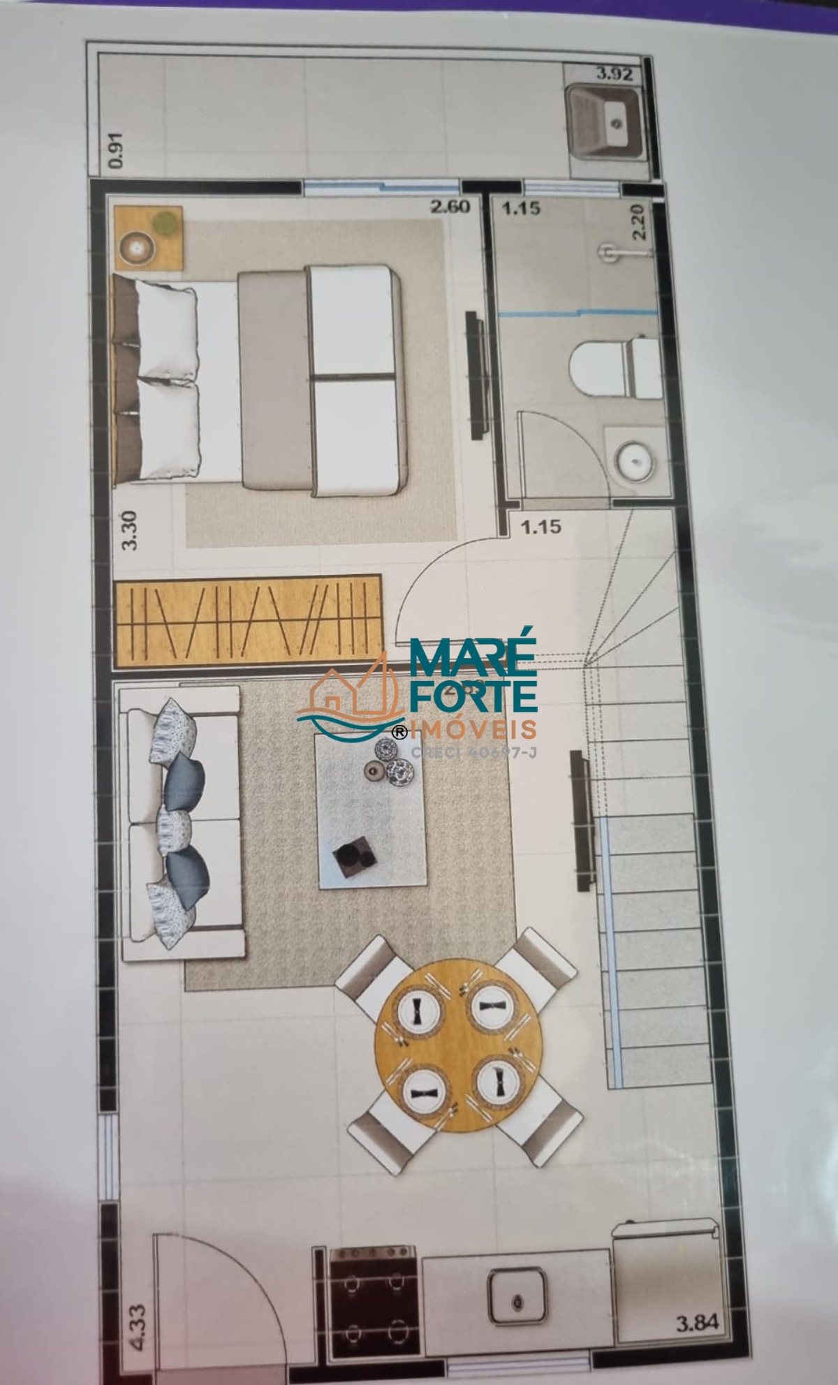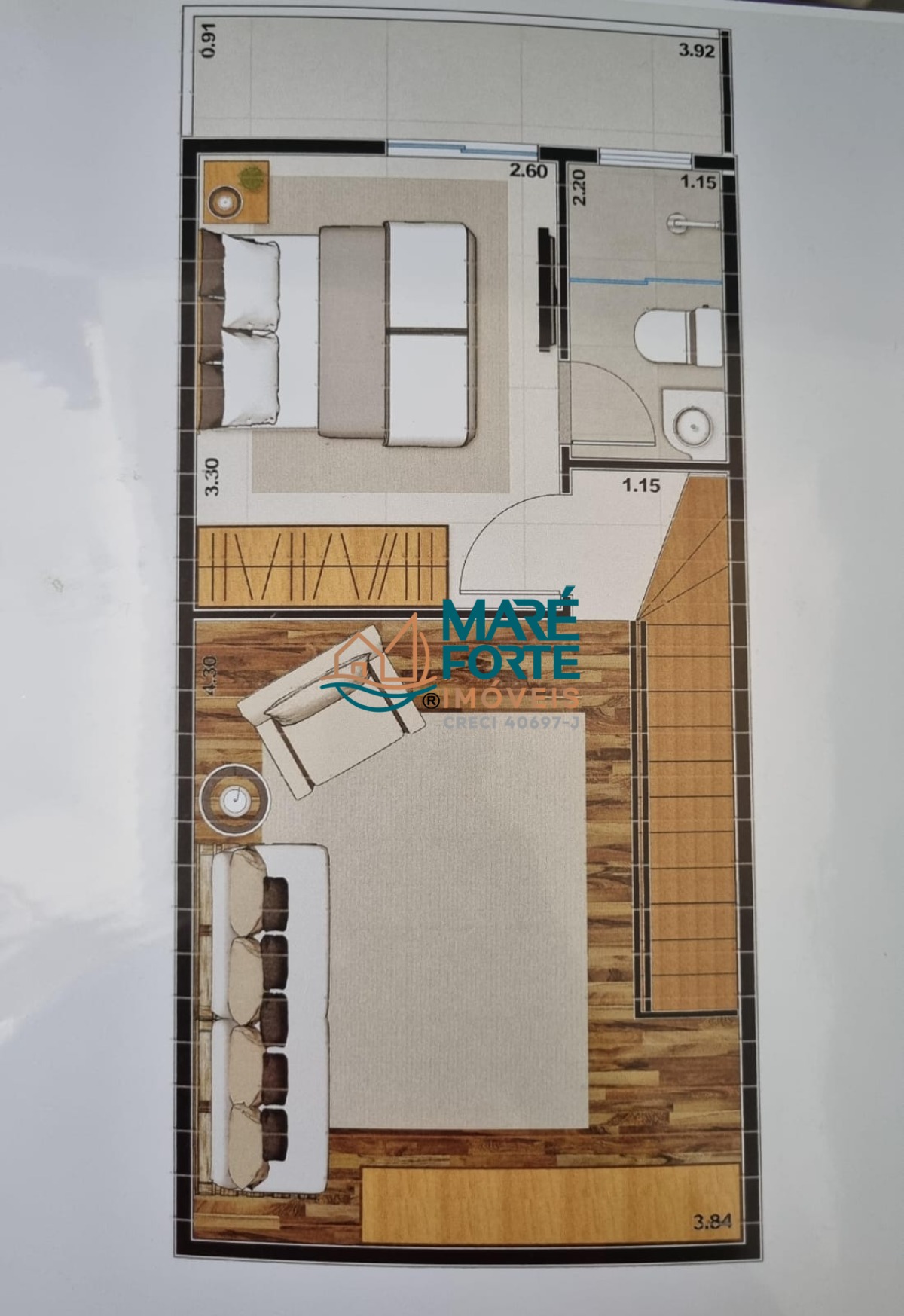 Ap de 61m² + 15m² do mesanino, totalizando 76m²
