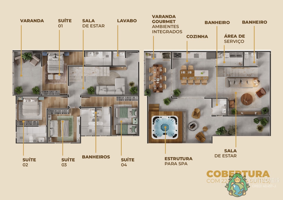 - 04 Suítes (224m²) com 03 vagas de garagem.
