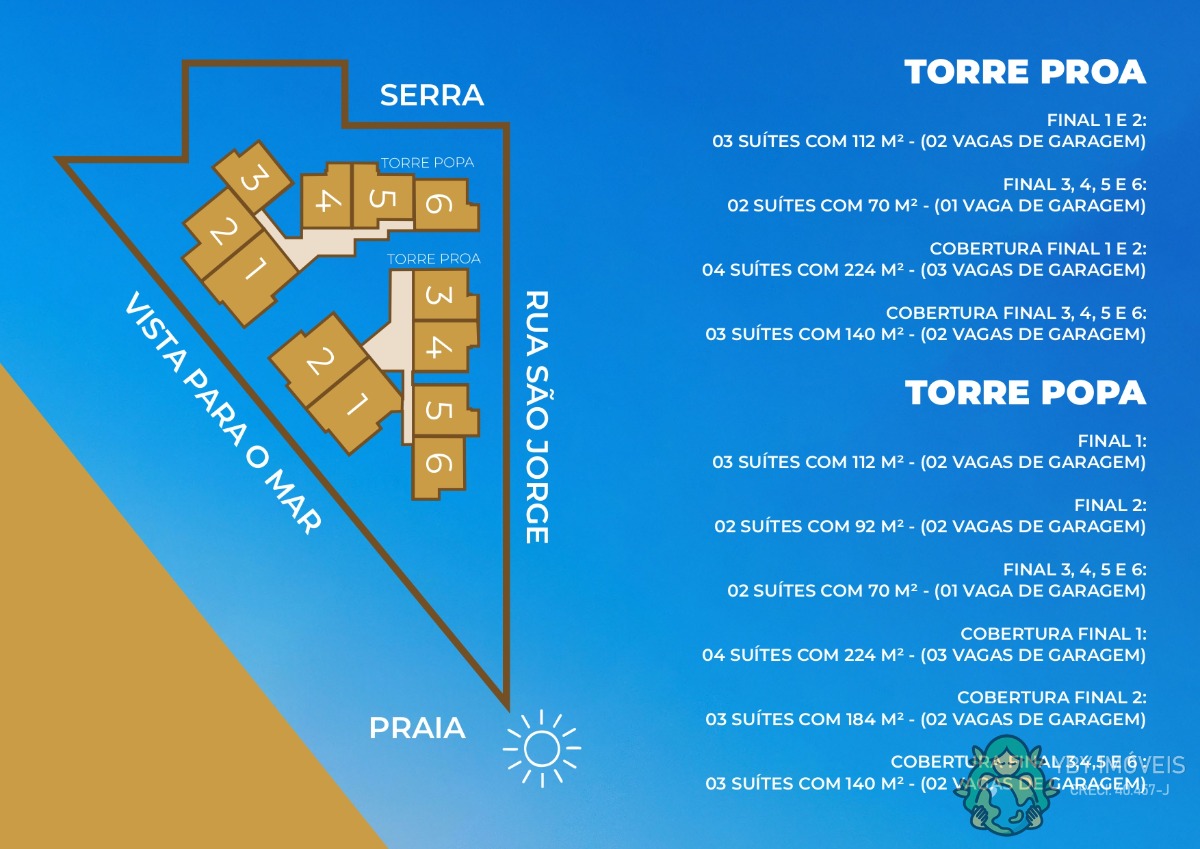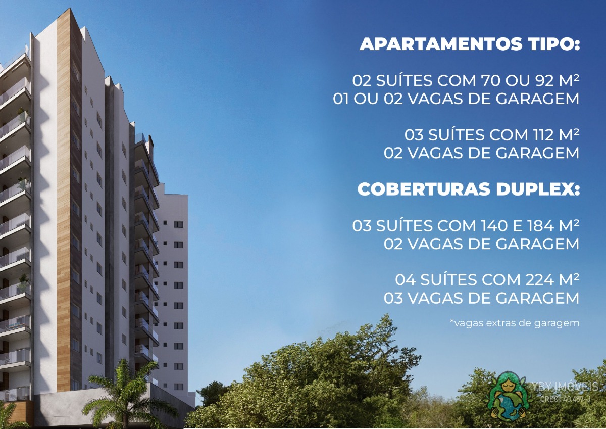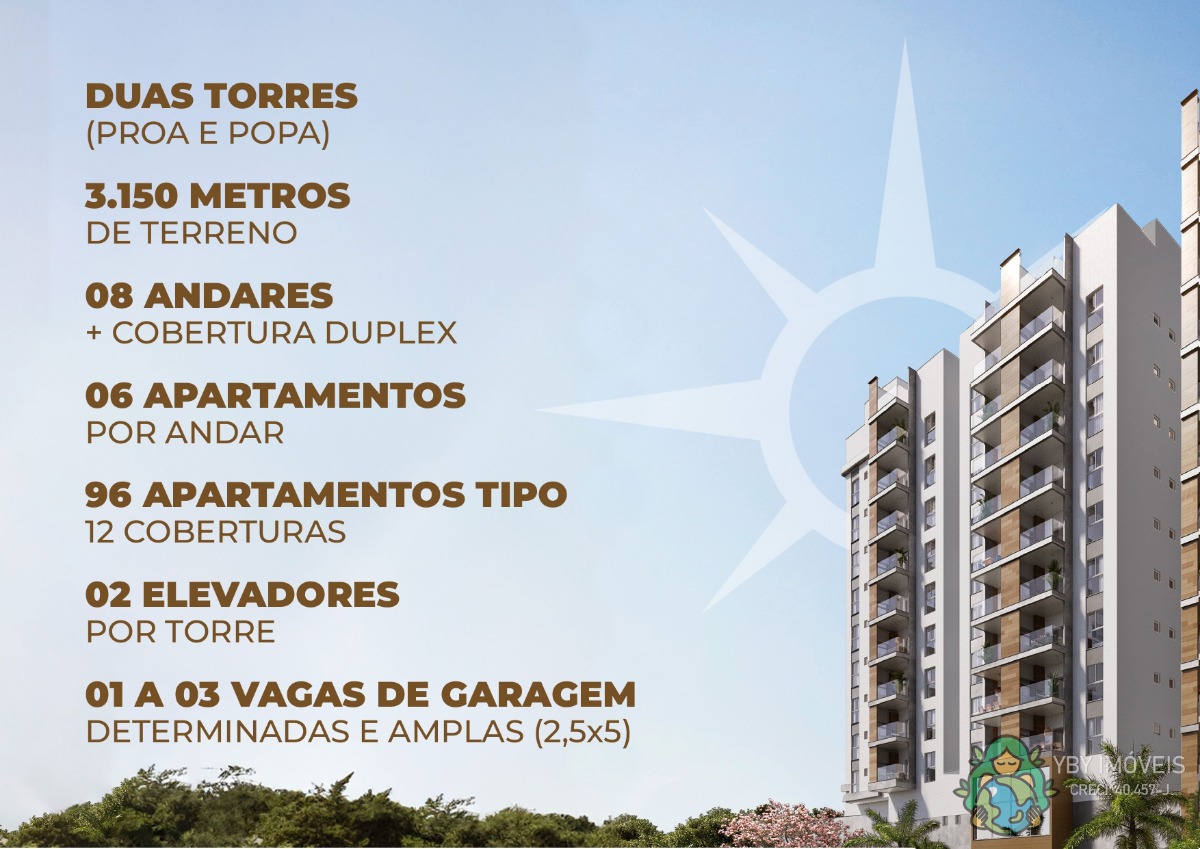 96 apartamentos tipo e 12 coberturas.