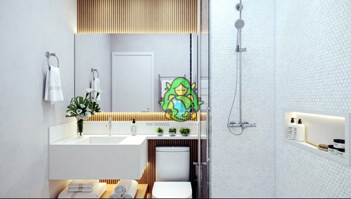 São 48 aptos de 58 a 80 m² de área privativa total com dois dormitórios sendo um suíte; uma vaga de garagem; varanda gourmet integrada com a sala de dois ambientes e cozinha; banheiro com azulejo até o teto;