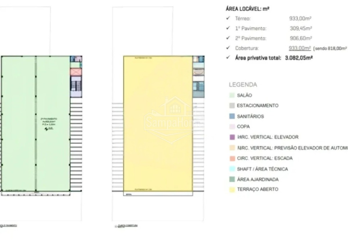 Rooftop de 933m², sendo 818m² ao ar livre perfeito para eventos, áreas de convivência ou espaços criativos
