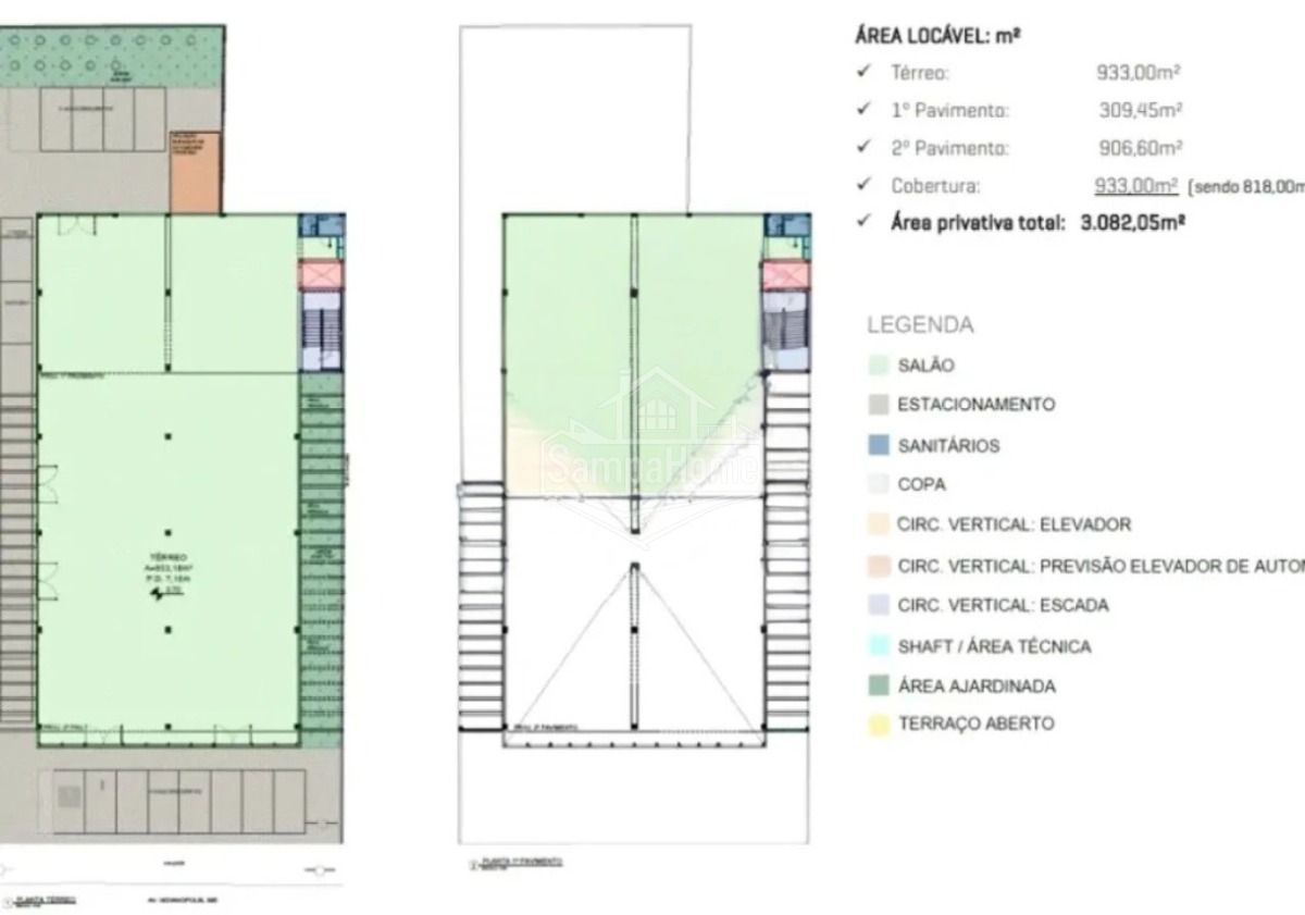 Com 3.083m² de área construída, o espaço é distribuído em: