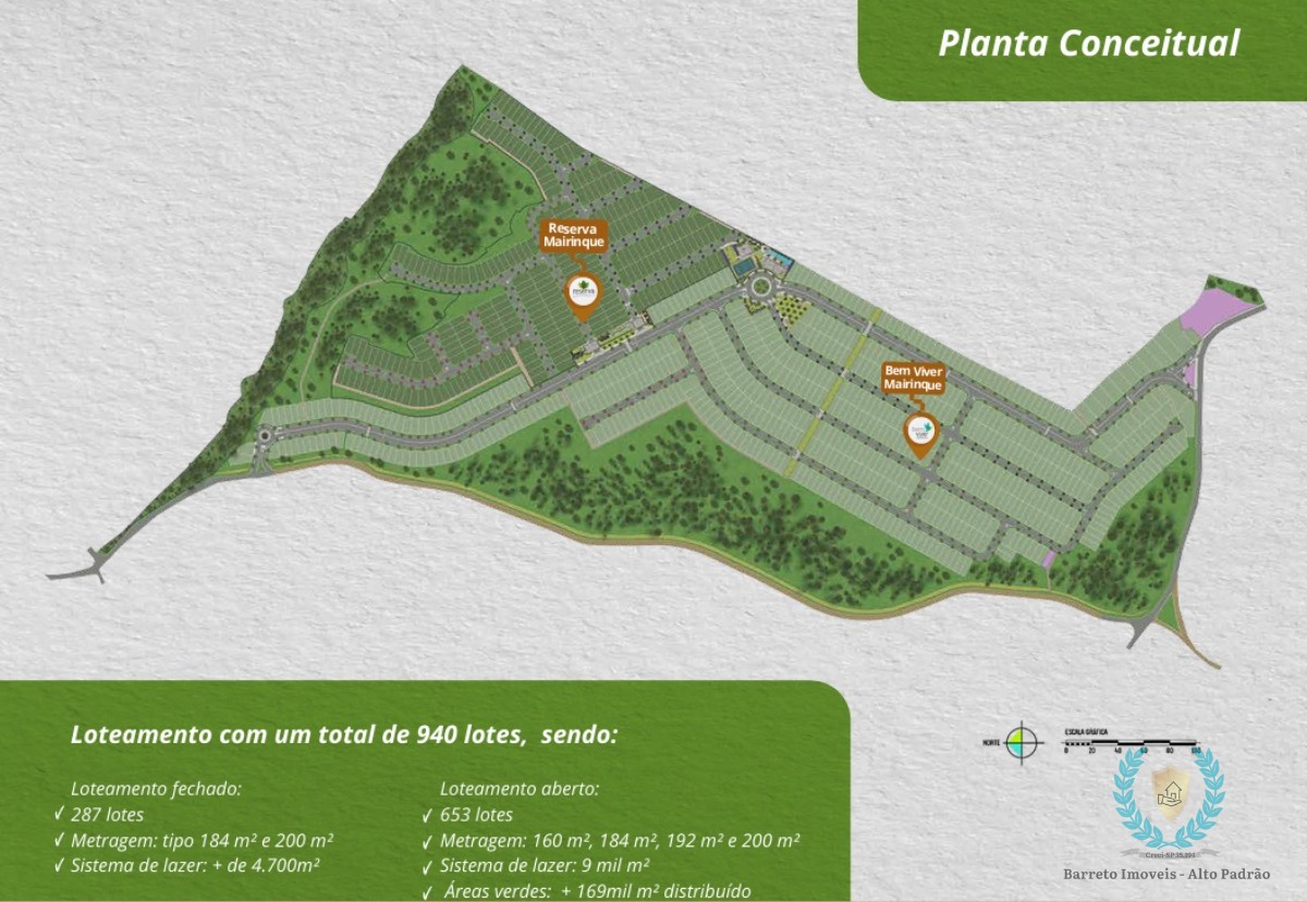 Loteamento com um total de 940 lotes.