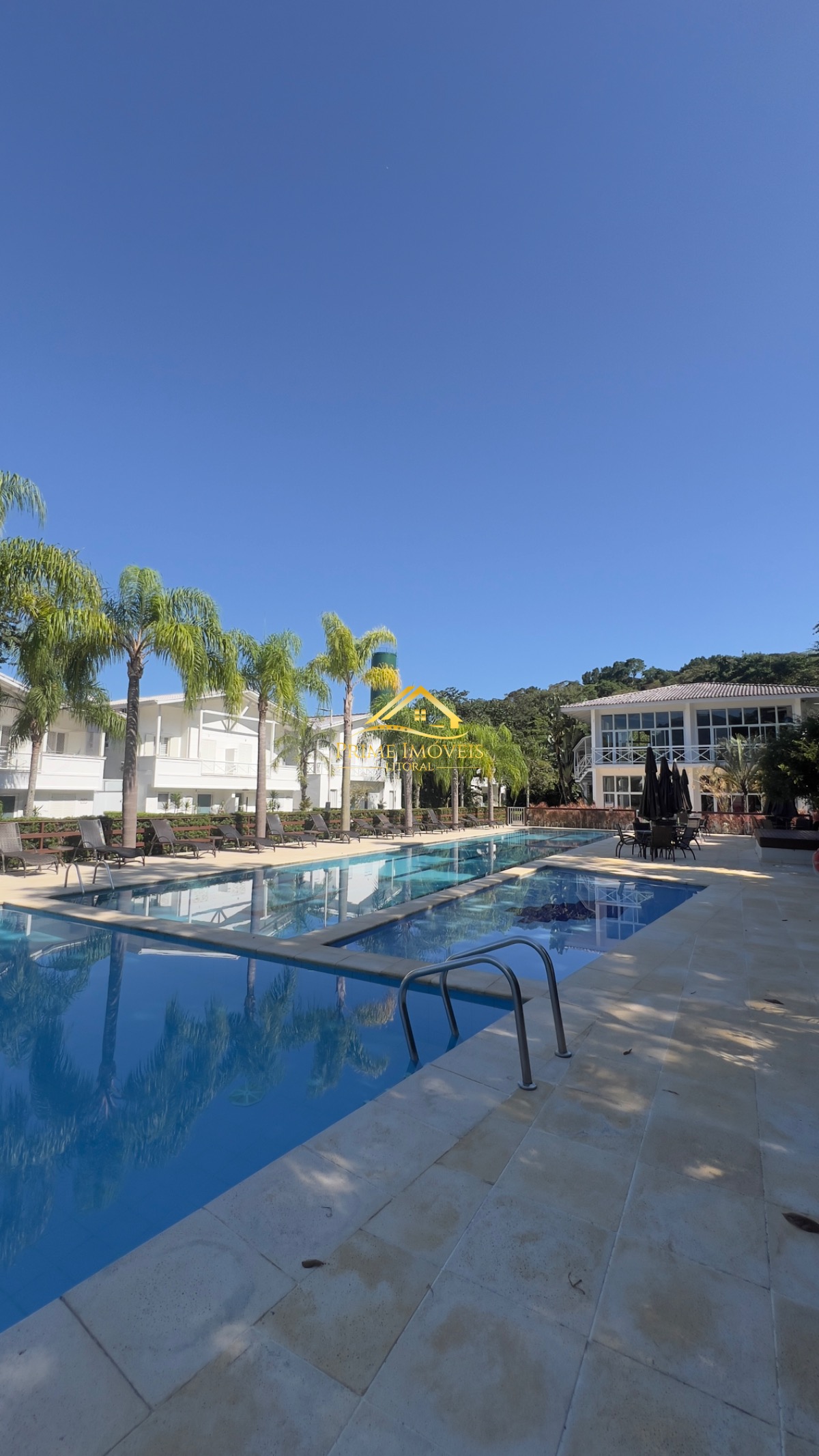 Condomínio estilo resort com segurança e portaria 24h, lazer completo e serviço de praia com cadeiras e guarda-sóis. Conta com 3 áreas de piscina (com deck, raias, quedas dágua, tobogã e infantil), quadras de tênis e futebol, academia, salão de jogos, sauna, playground, brinquedoteca, pergolado e trilhas na mata. A casa possui churrasqueira, deck, lavanderia com máquina lava e seca, cozinha equipada, roupas de cama e banho, além de Wi-Fi de qualidade.