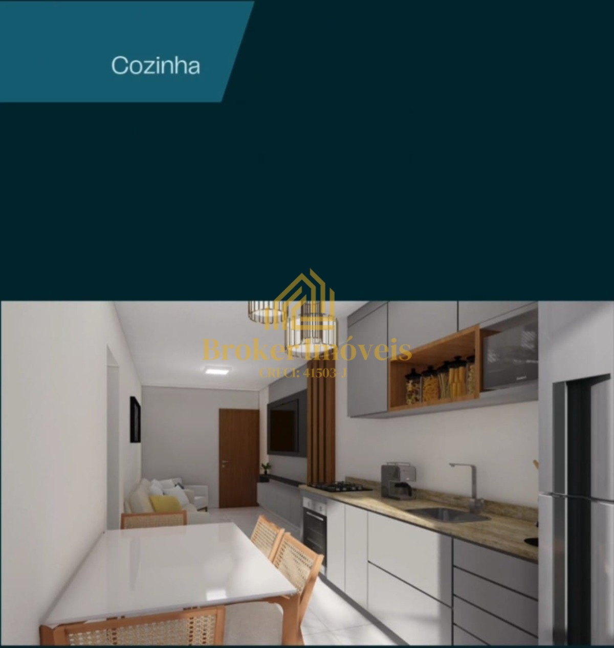 - Sala e cozinha integradas, criando um ambiente moderno e -funcional