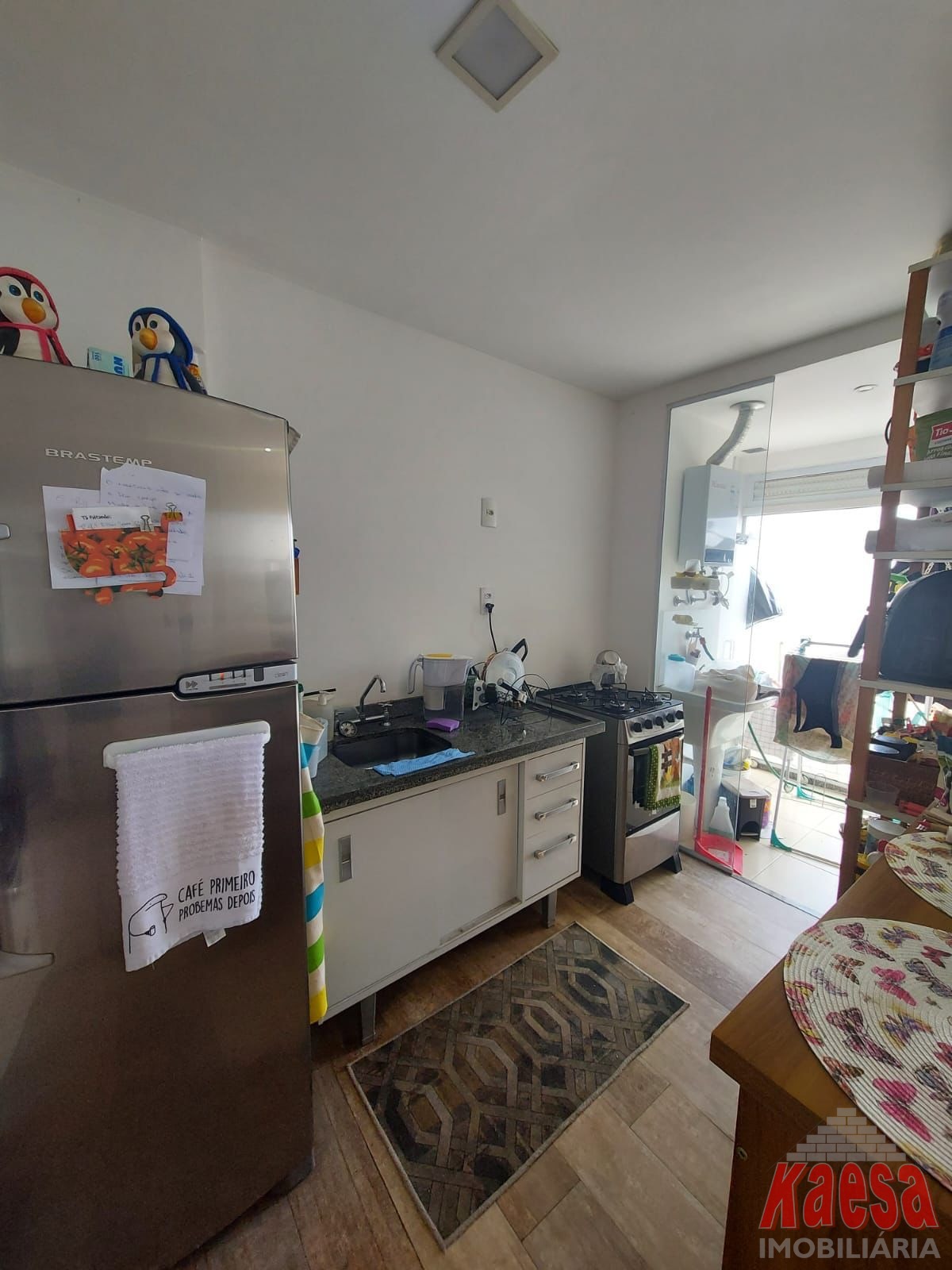 1 dormitório mobiliado, 1 banheiro, uma sala mobiliada integrada com a cozinha e uma cozinha também mobiliada, além da lavanderia.