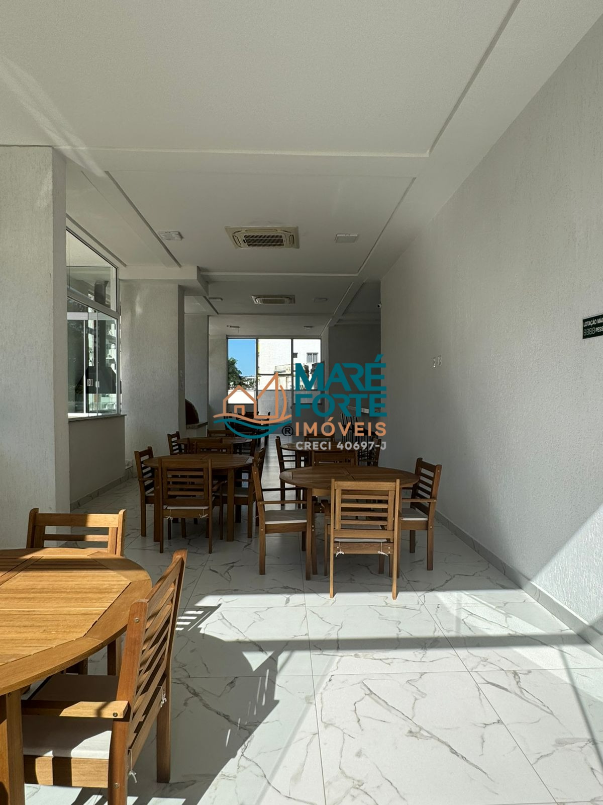 A área privativa conta com uma sala de estar e uma sala de jantar integradas, criando um espaço ideal para receber amigos e familiares.