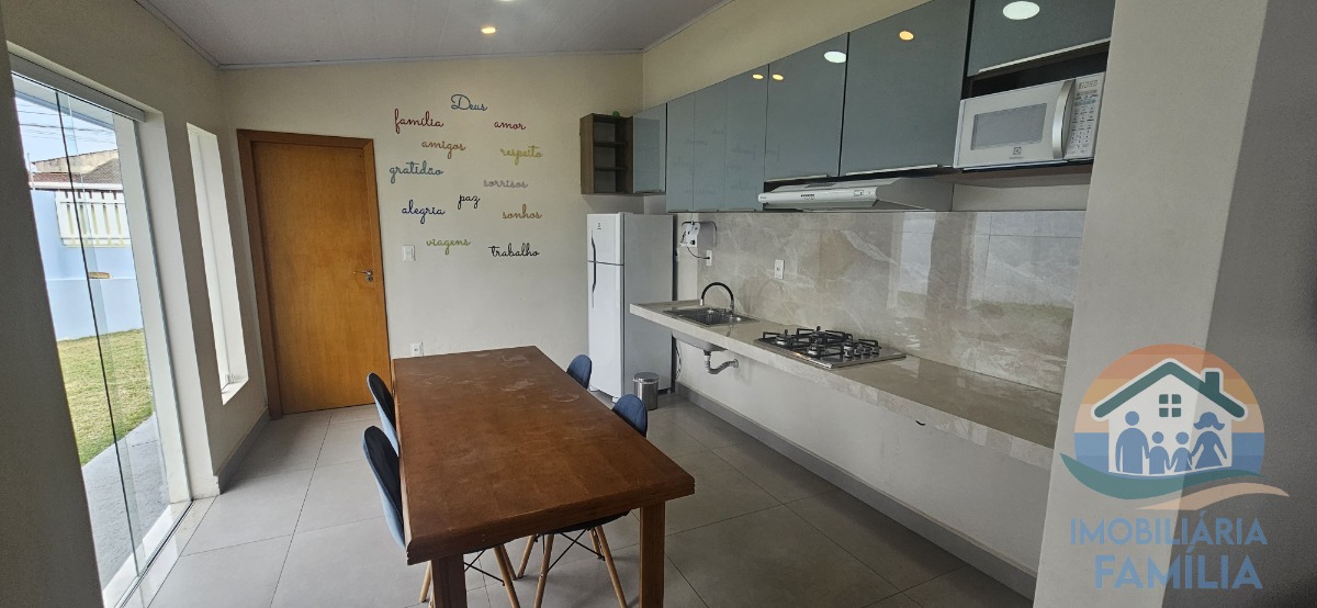 Imóvel contando com três dormitórios (2 suítes), sala de estar e jantar, cozinha ampla com armários planejados e cooktop, lavabo, área de serviços, banheiro social, amplo quintal com 8 vagas de garagem e muito espaço para futura área gourmet e piscina.
