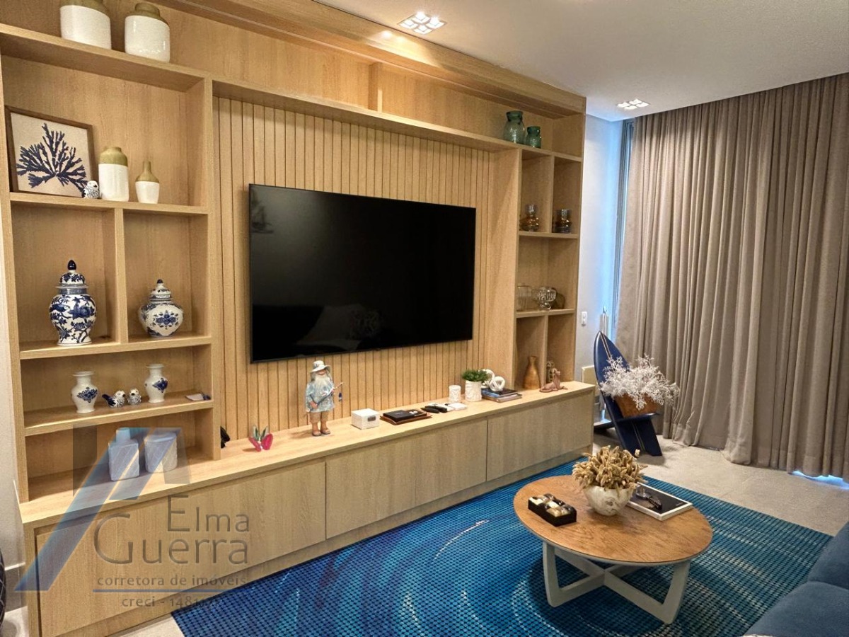 Sala de estar e de jantar amplas, conceito aberto, com sacada com vista ampla para o mar