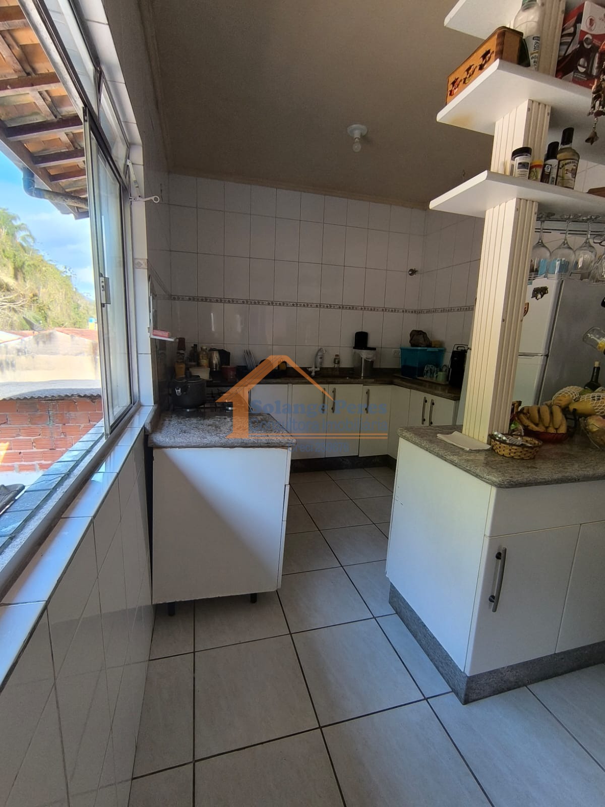 A cozinha é equipada com armários, facilitando a organização e o armazenamento.