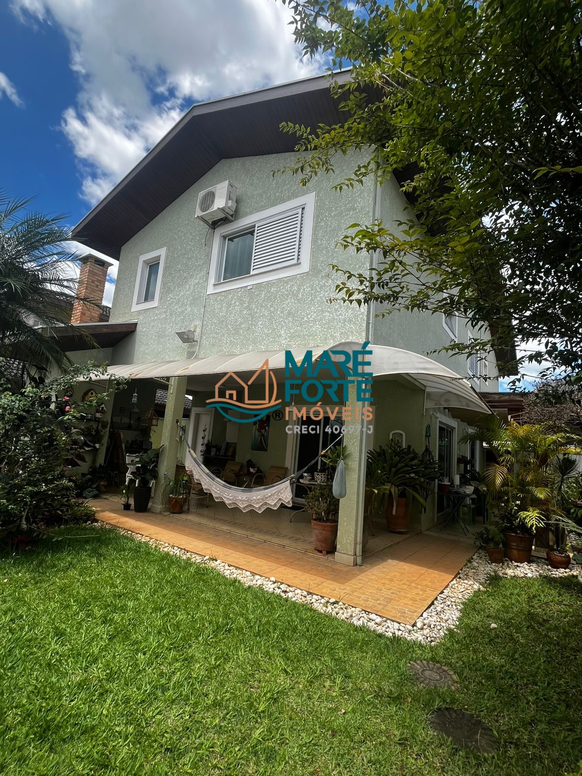 O imóvel ainda dispõe de um agradável jardim e quintal, além de uma varanda que convida ao relaxamento.