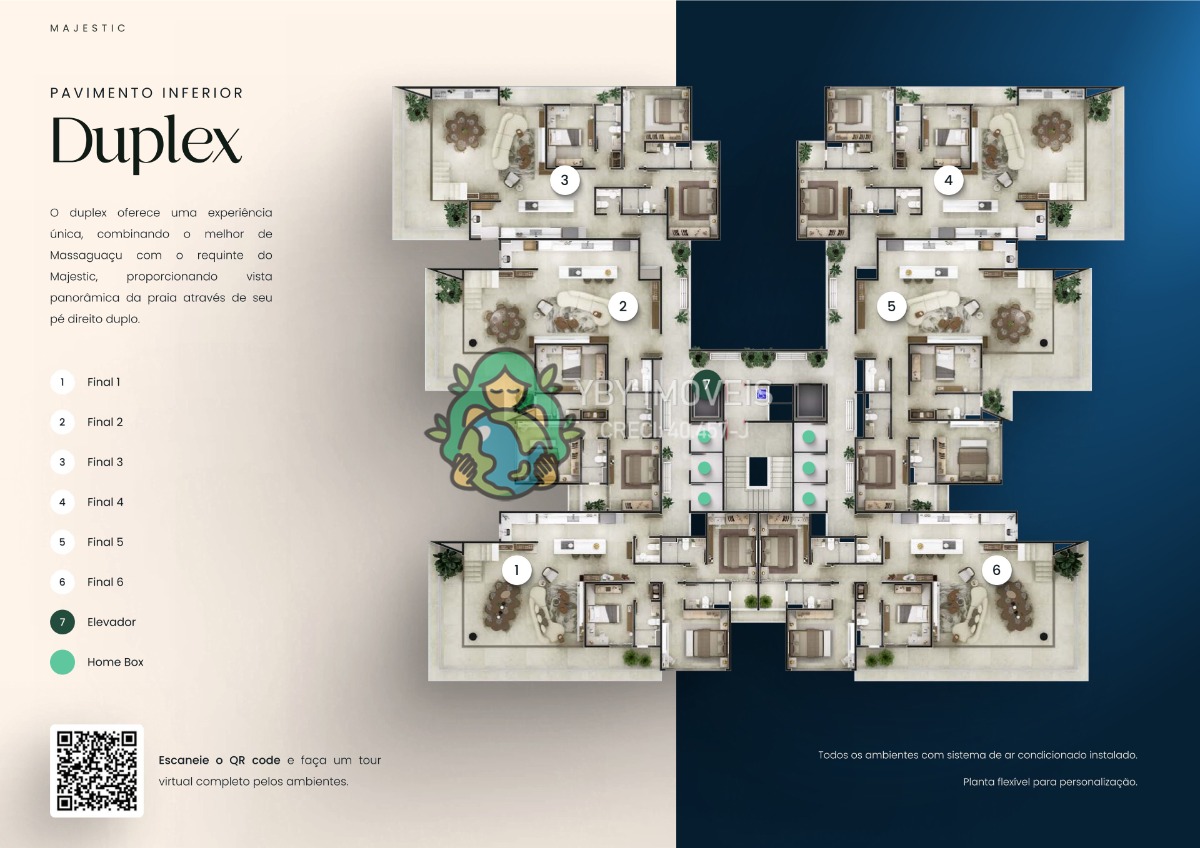 - Torre única com 54 apartamentos (6 por andar)