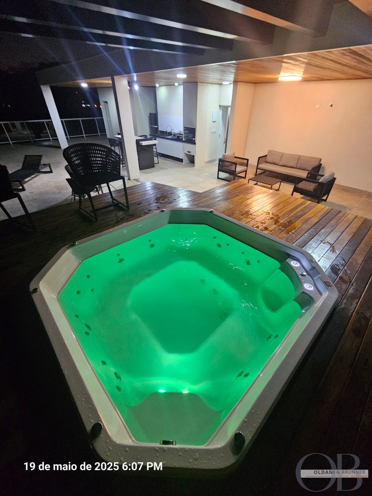 Solarium completo com sala, cozinha, área gourmet, deck com spa para 8 pessoas, pergolado em vidro com filtro solar, chuveirão externo e banheiro;
