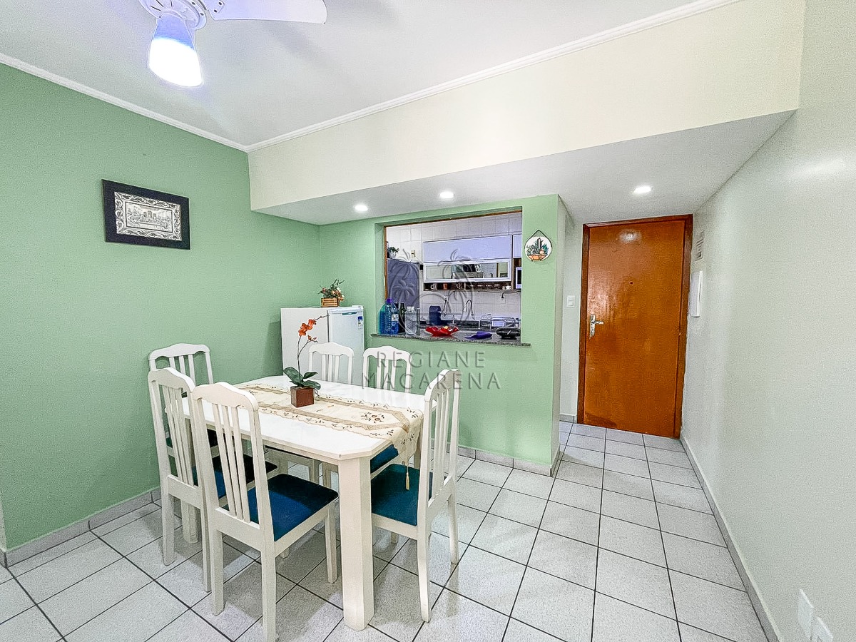 Apresento um excelente apartamento de oportunidade à venda, situado a poucos passos da praia, com 2 dormitórios, sendo 1 suíte, além de um banheiro social, sala de TV e jantar com sacada, e cozinha conectando-se à lavanderia que conta com ventilação natural. Todos os ambientes são climatizados com ventiladores e já mobiliado, bem arejado sendo frente rua e esquina.