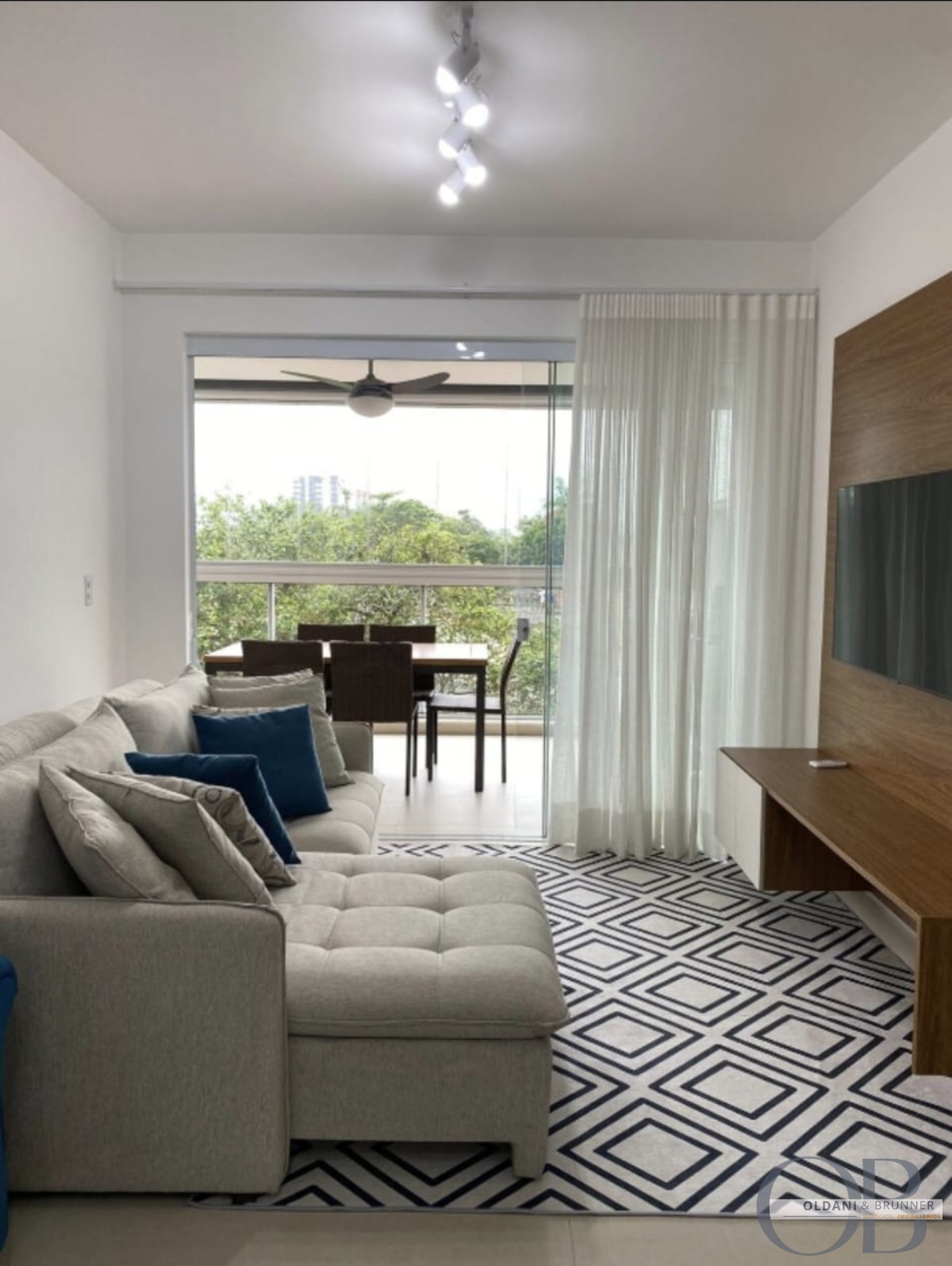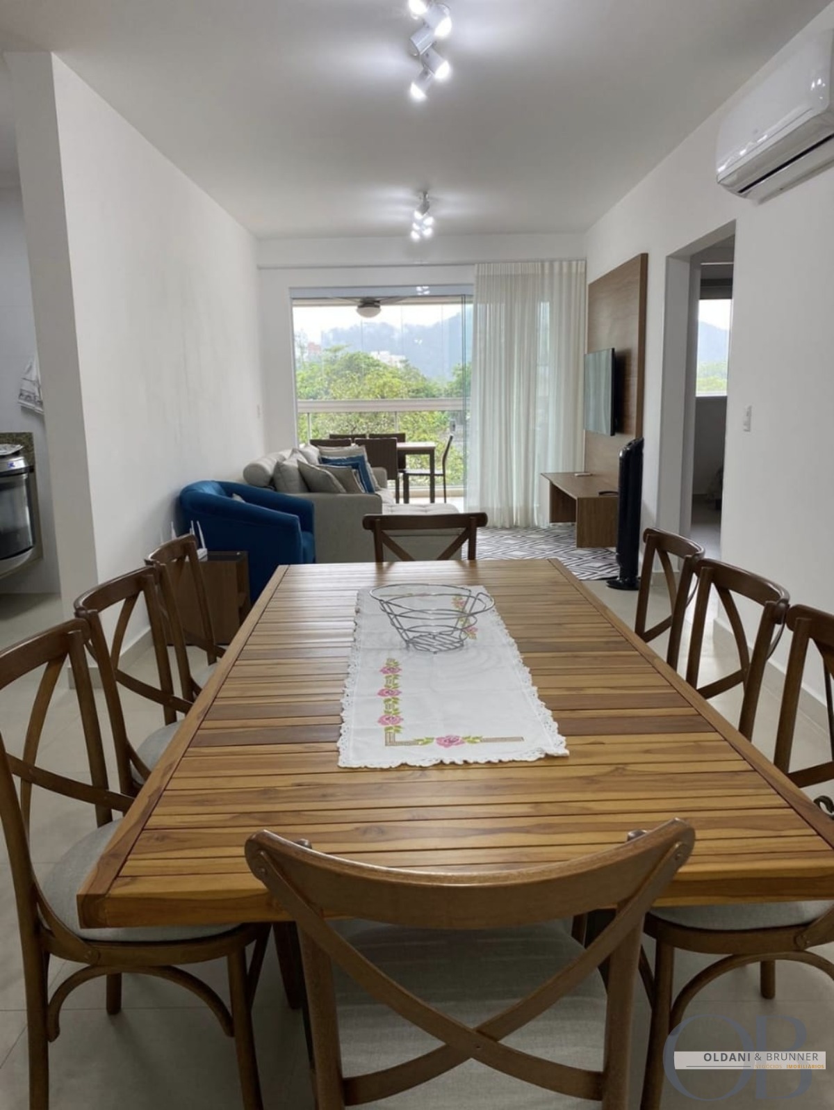 Sala de estar e sala de jantar integradas, com ótima iluminação natural