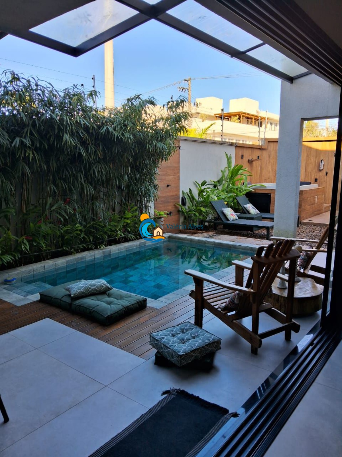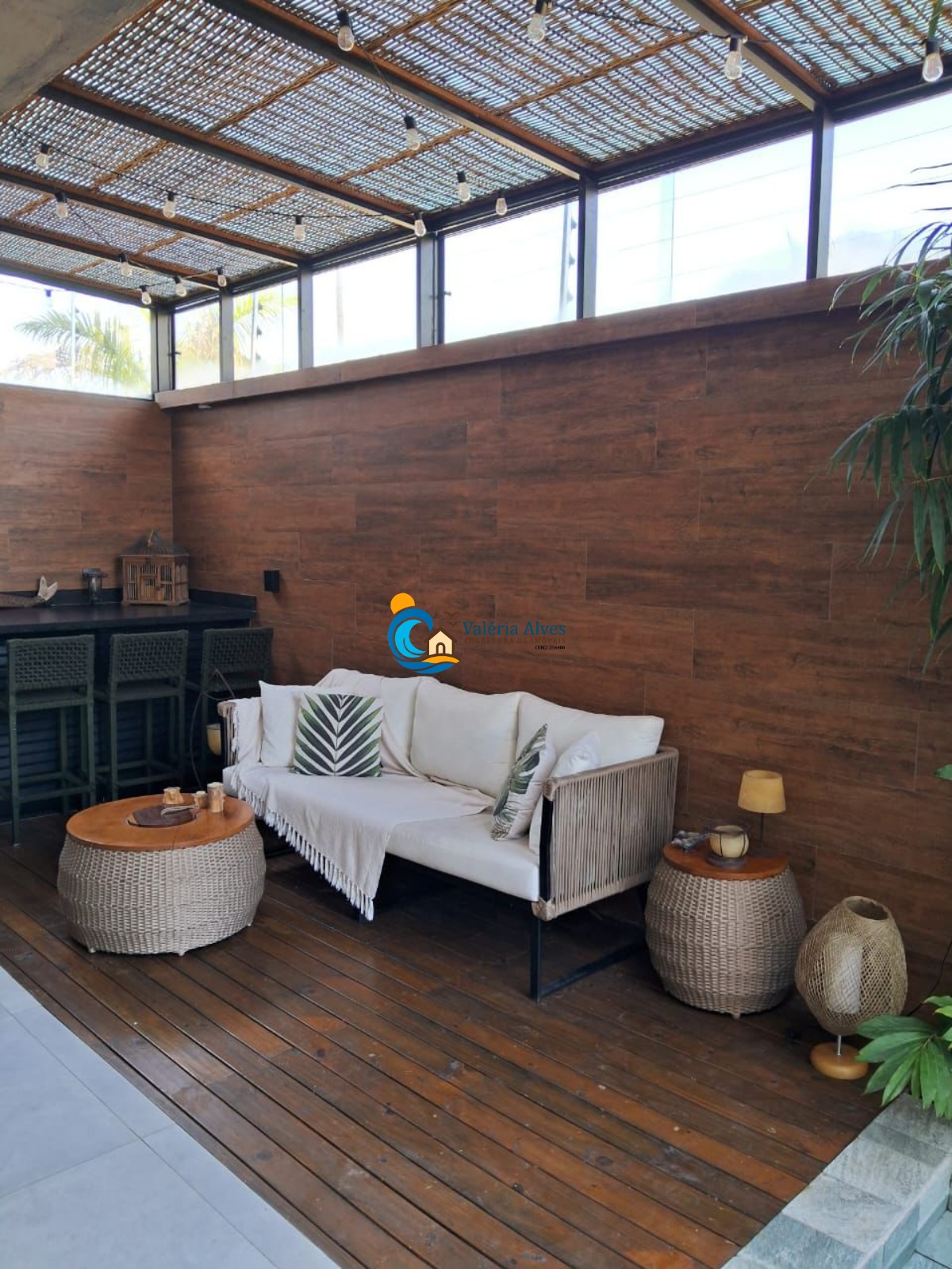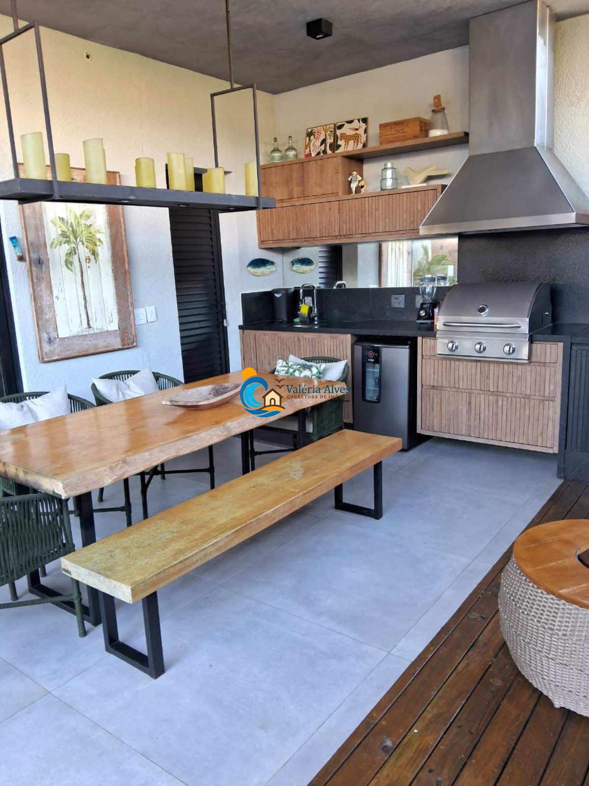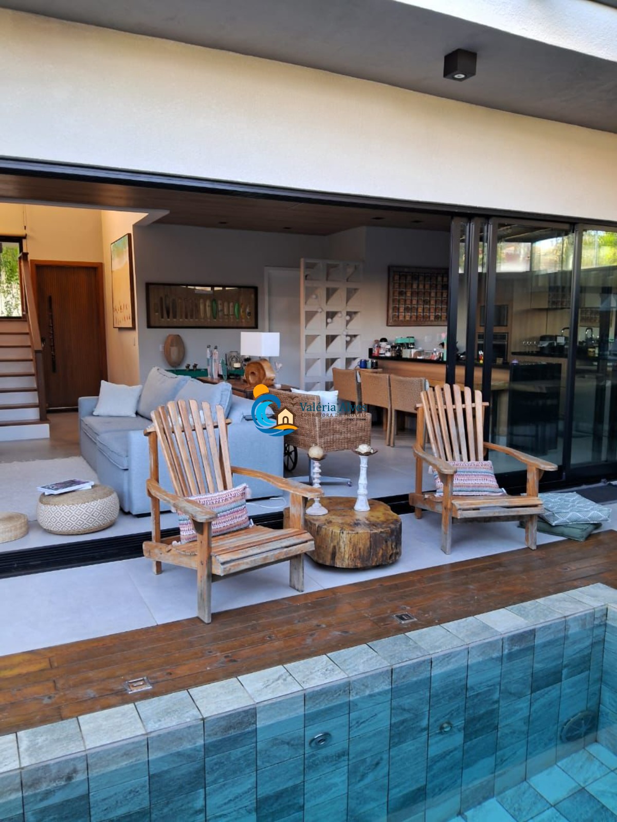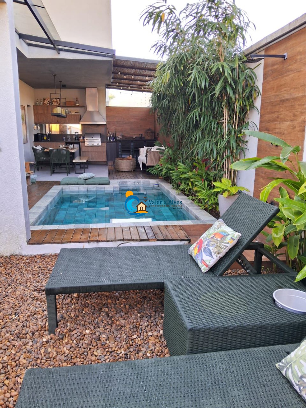 A área externa conta com churrasqueira e piscina, ideal para confraternizações.