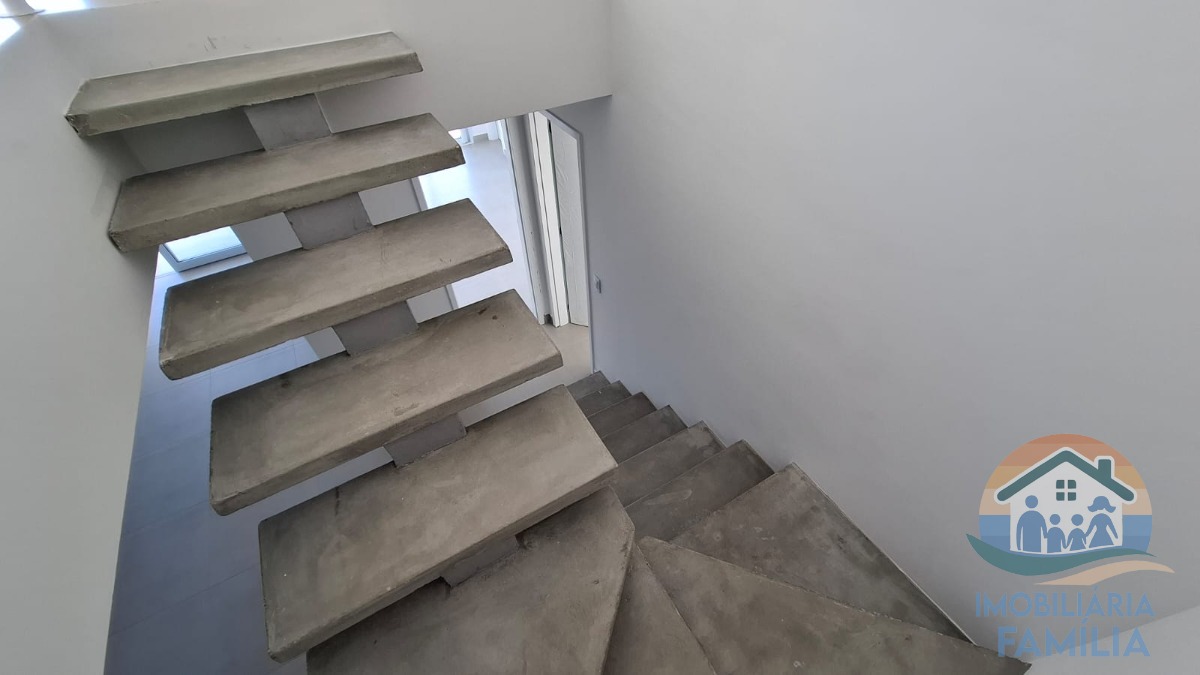 Piso superior conta com sala ampla, lavabo, suíte, parte externa ampla com churrasqueira á carvão e vista panorâmica da cidade e do mar.