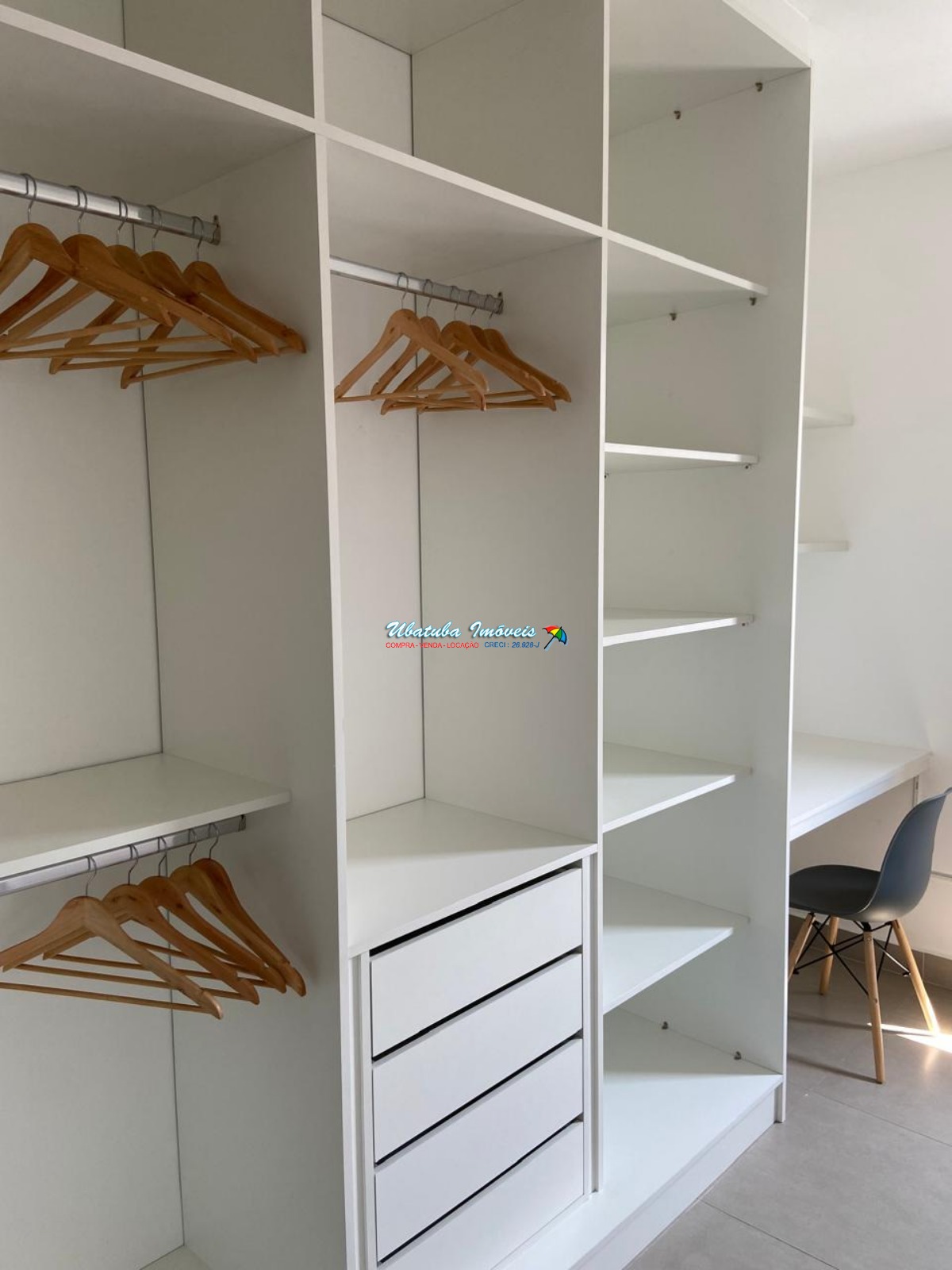 A presença de armários embutidos otimiza o espaço e oferece mais conforto.