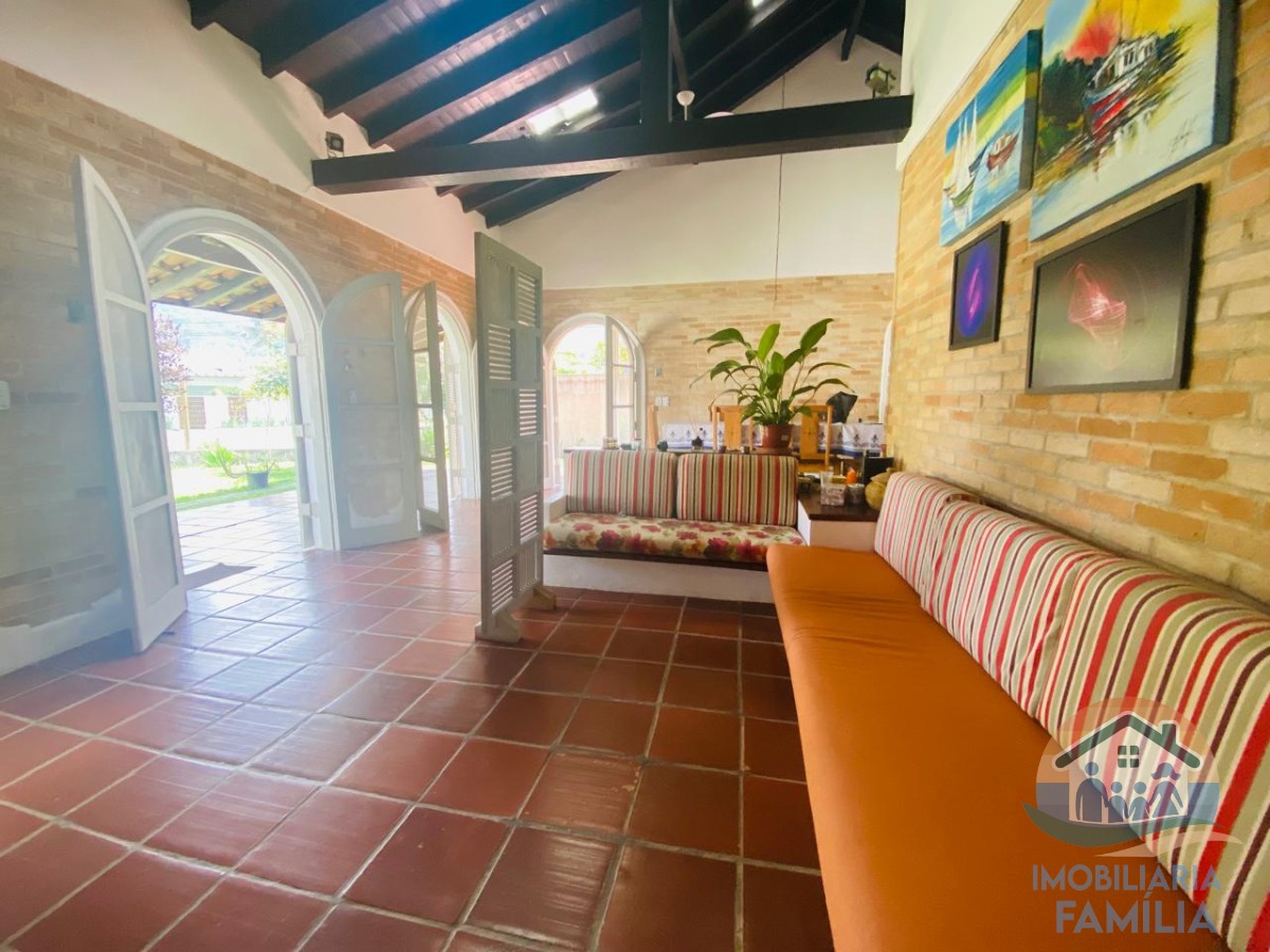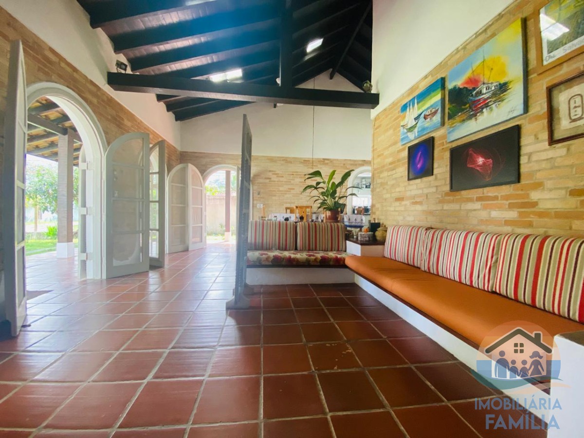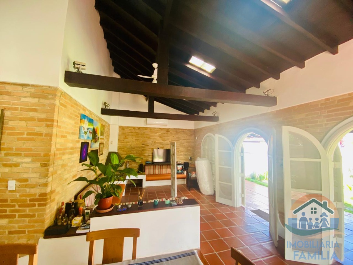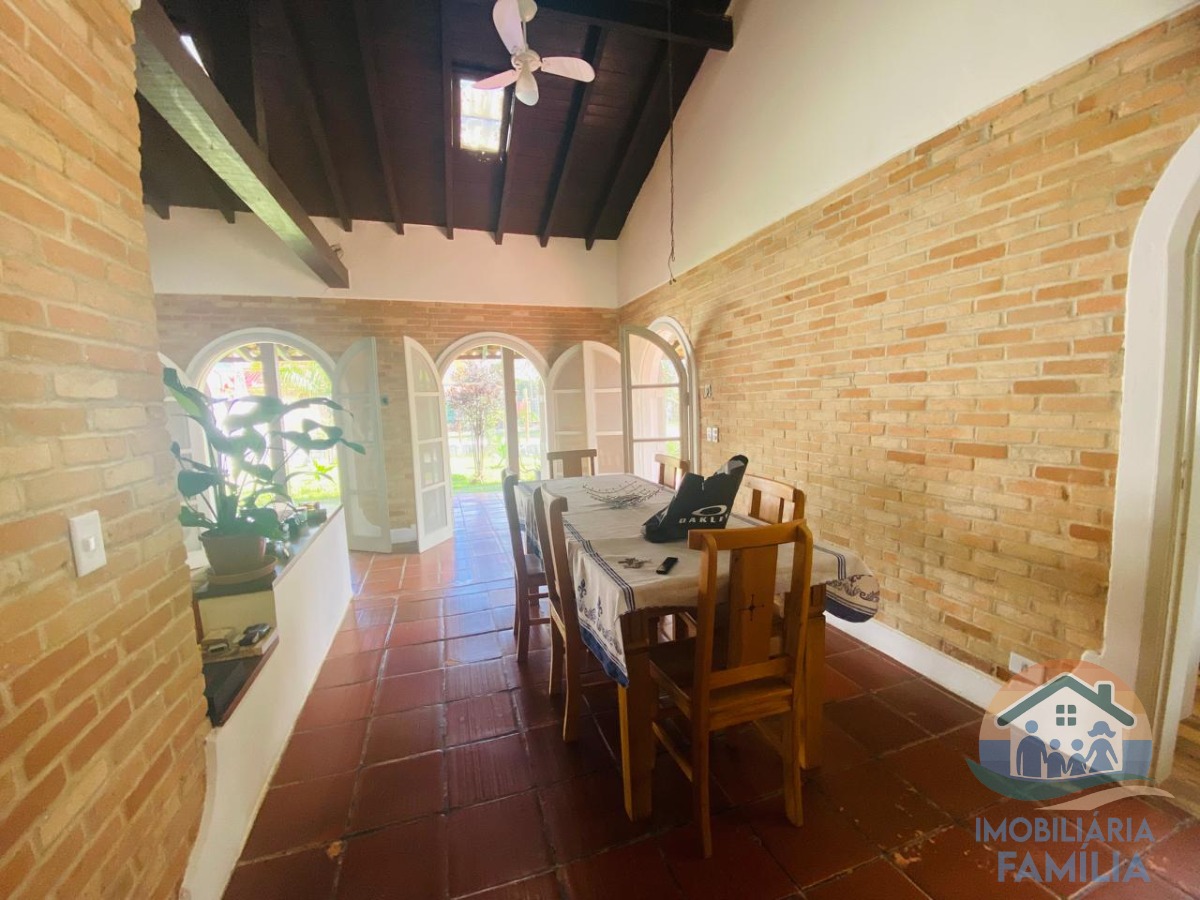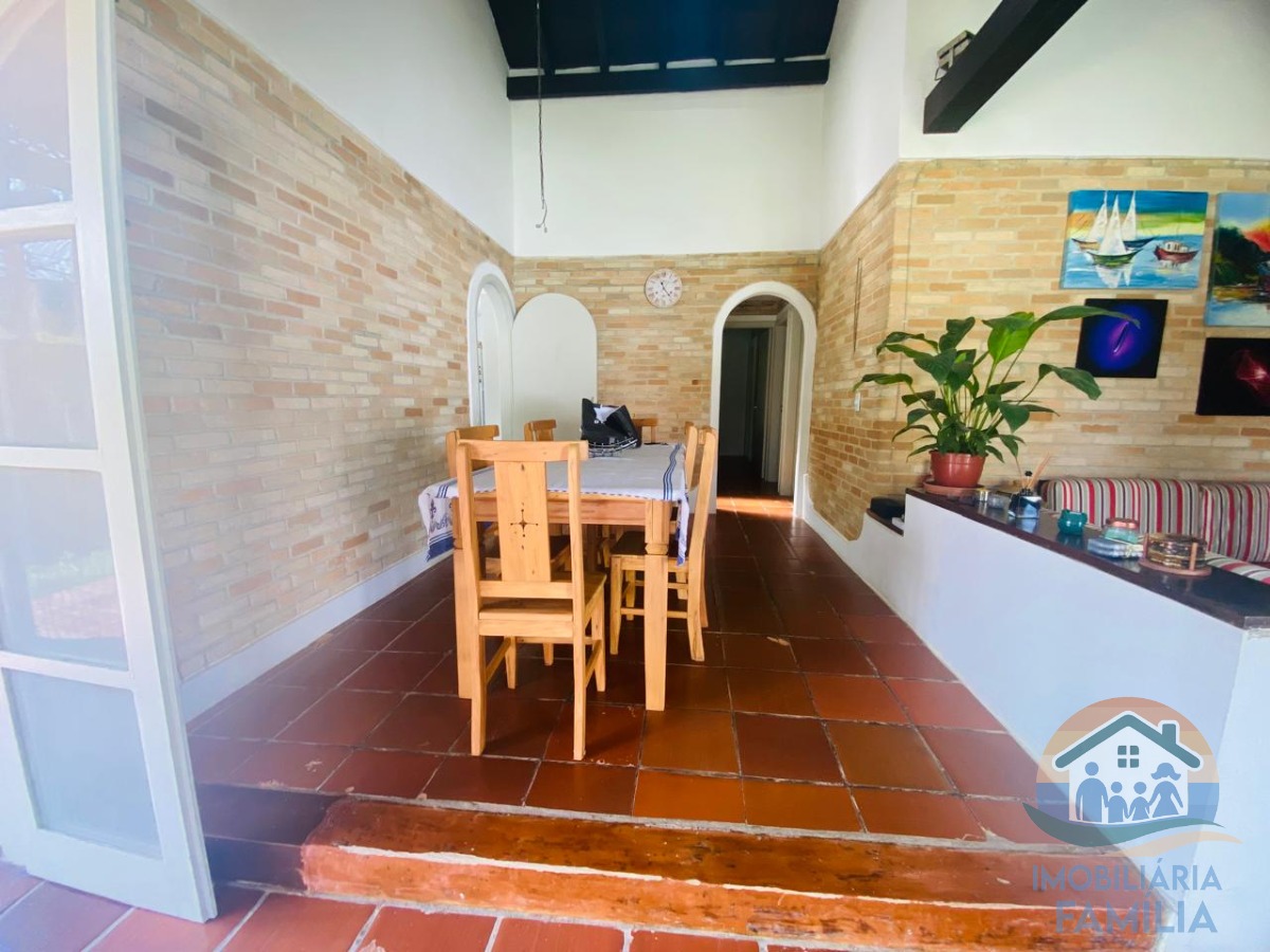A casa conta com uma sala de estar e uma sala de jantar, proporcionando ambientes distintos para receber amigos e familiares.
