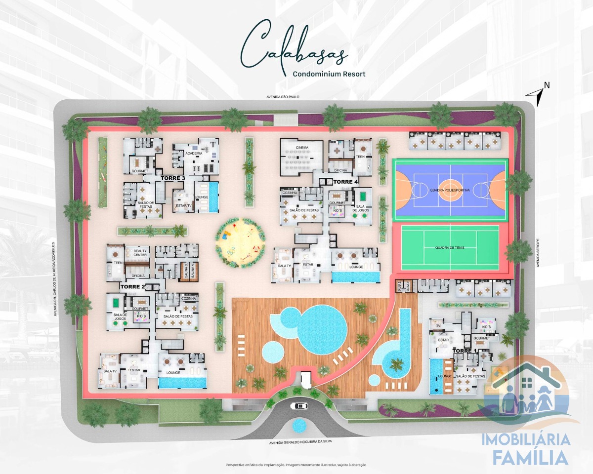 O Calabasas Ocean Front é distribuído em 04 torres, em um terreno de mais de 11.000 m², oferecendo uma área de lazer completa, com: