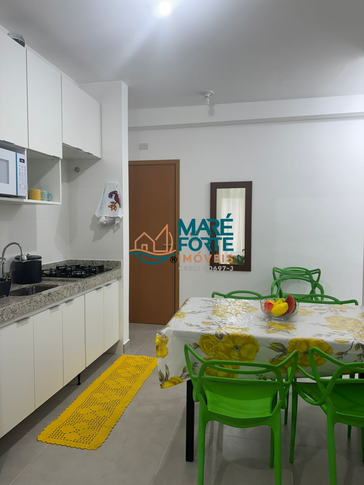 A cozinha é prática e funcional, e a área de serviço é bem distribuída.