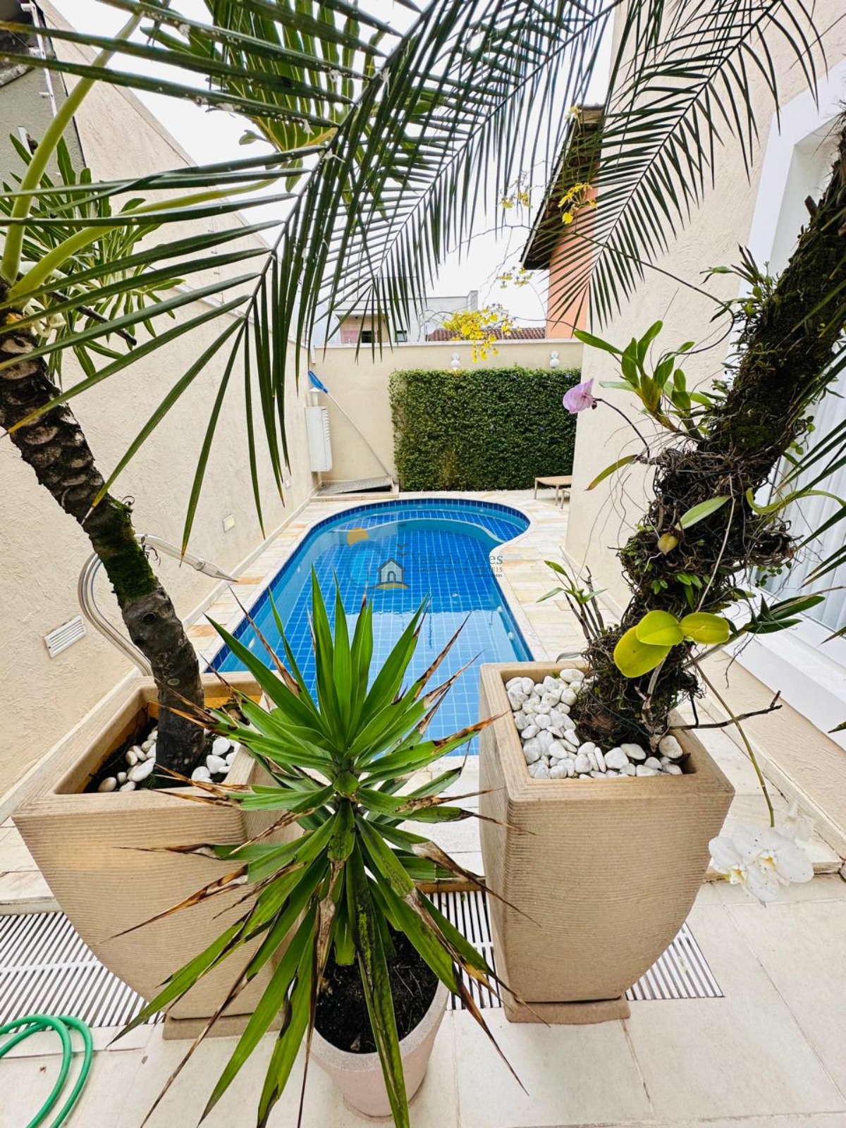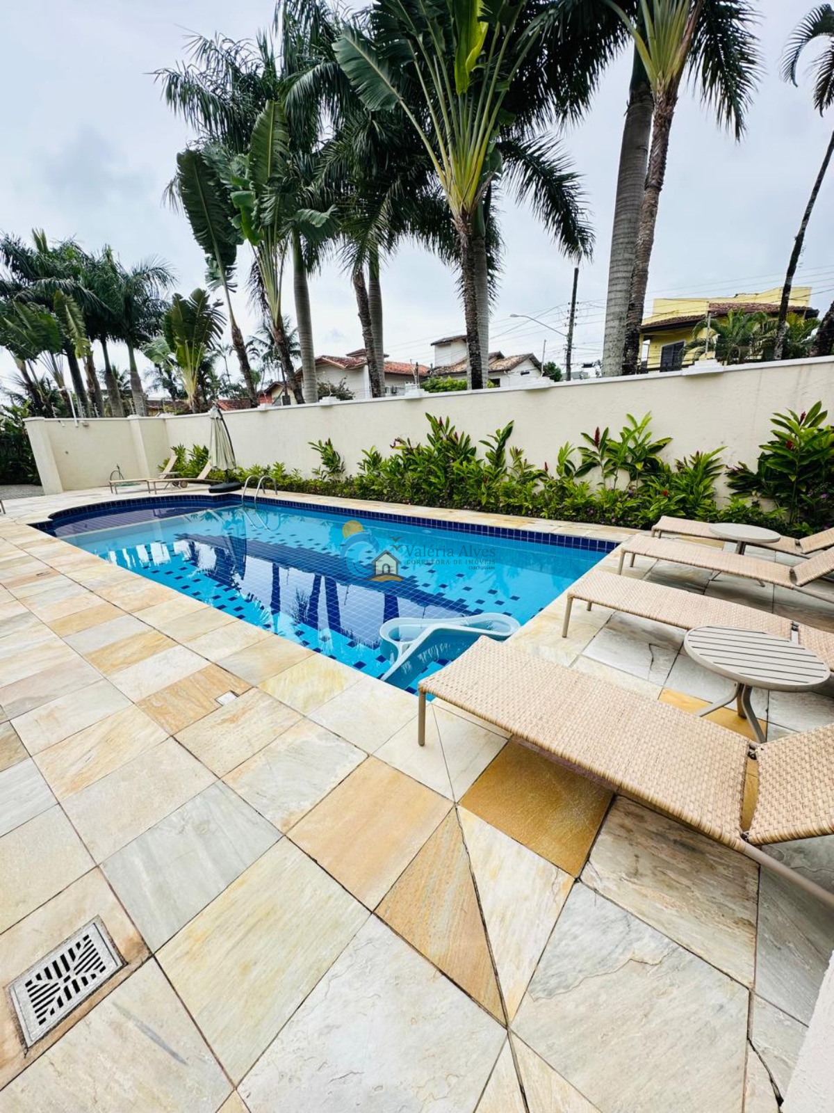 A piscina é um convite ao relaxamento e ao lazer, ideal para os dias ensolarados.