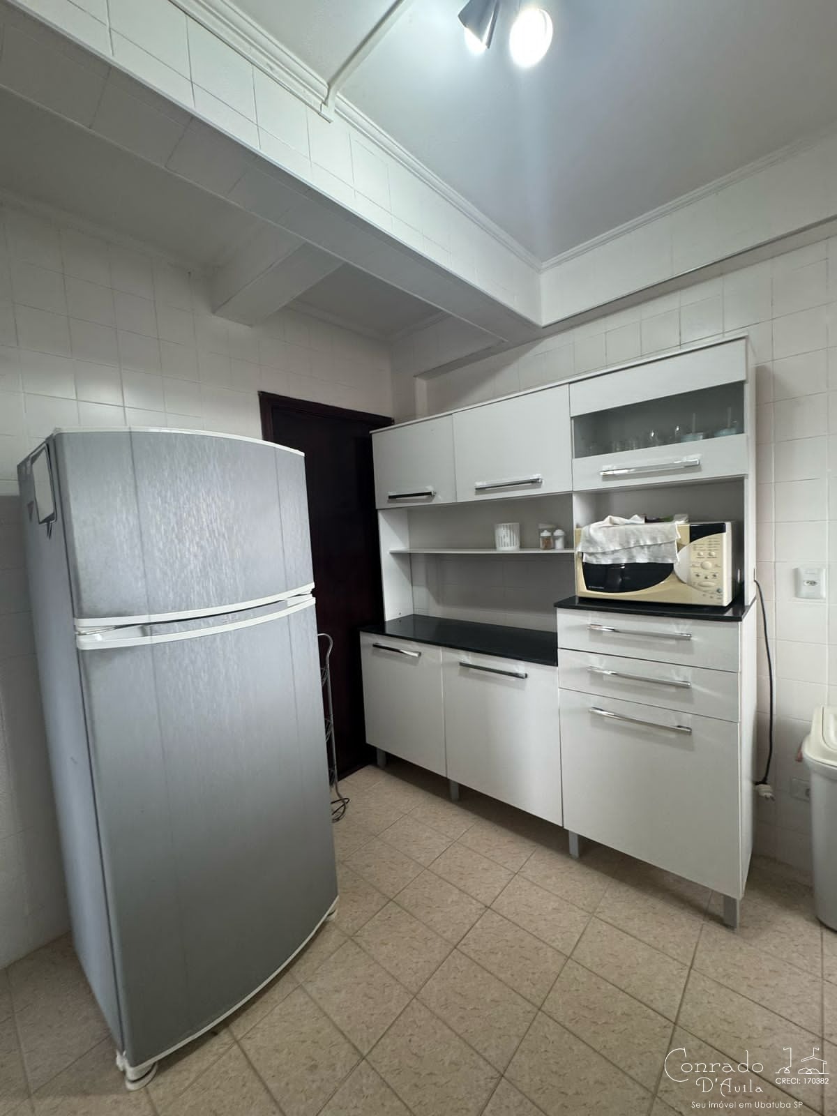 O imóvel é mobiliado e possui armários de cozinha e embutidos, garantindo organização e aproveitamento de espaço.