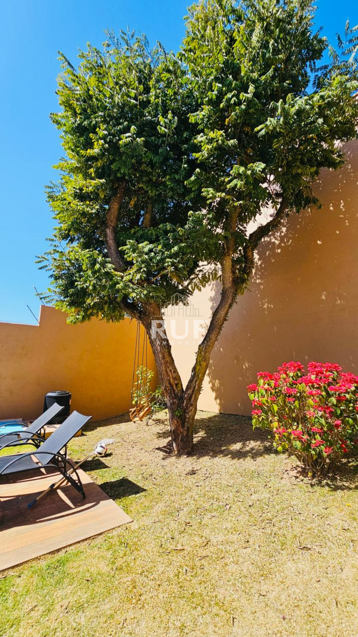 - quintal lateral e área verde no fundo do terreno com árvore frutífera