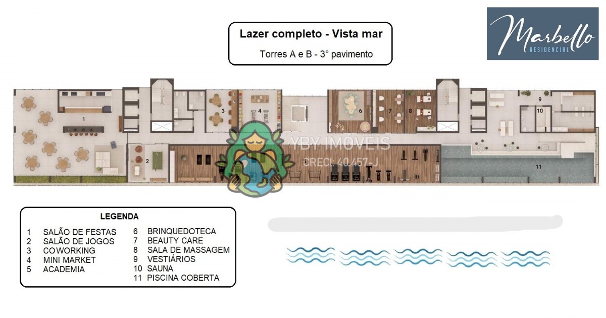 Lazer completo no 3º pavimento das Torres A e B, com vista para o mar
